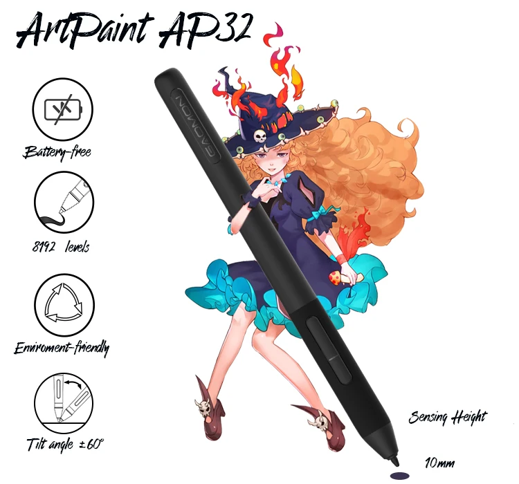 M1220 drawing tablet comes with 8192 levels Battery-free pen AP32, which provide you with a smoothly drawing experience. The tablet support±60 degrees tilt feature , which ensure the lines more accurate and natural.