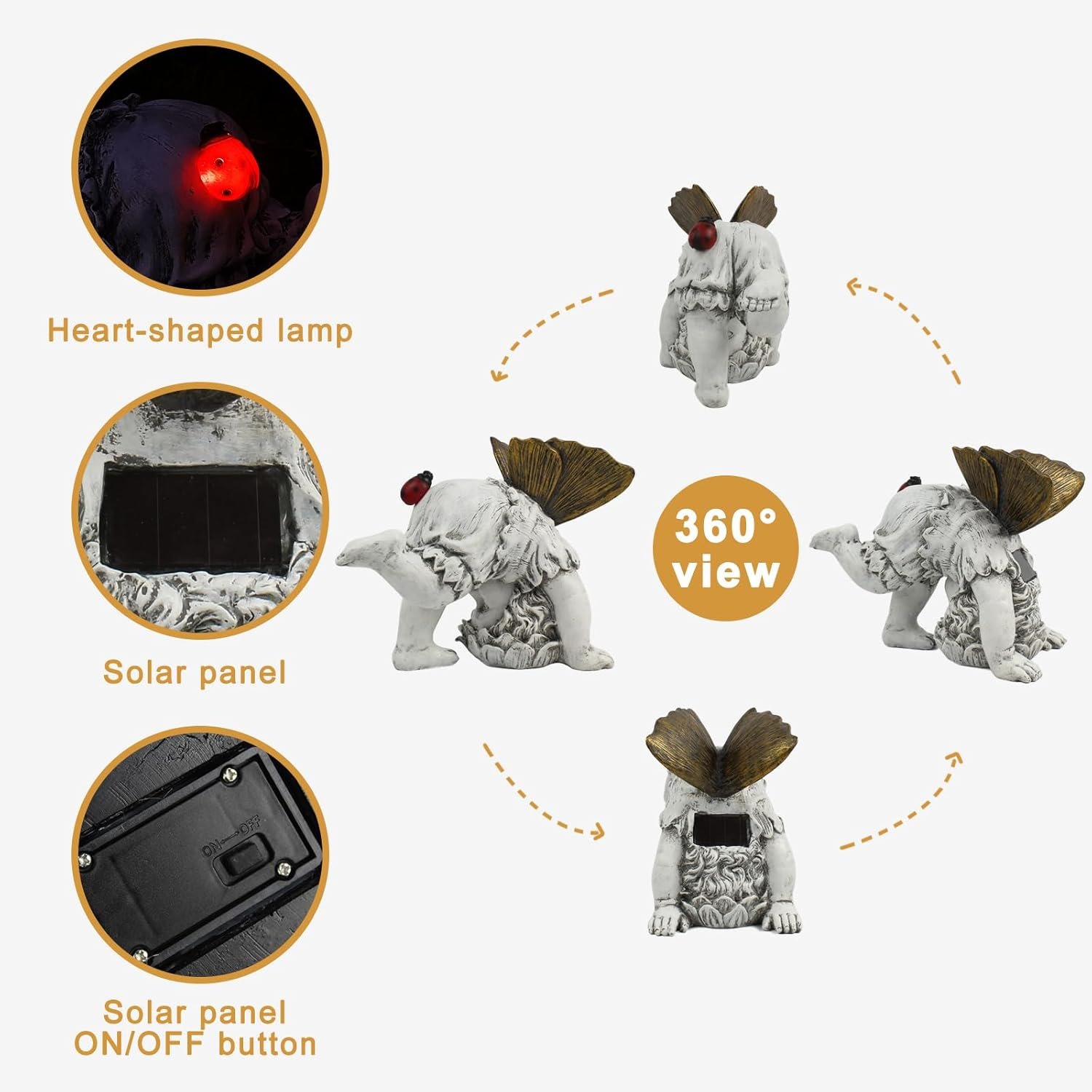 【AUTO-ON SOLAR LIGHT】This solar flower fairy statue is very easy to install and use. simply turn on the switch and place it under the sunlight and let them charge during the day. they will automatically turn on at night to provide a warm and welcoming glow for 8-10hours.