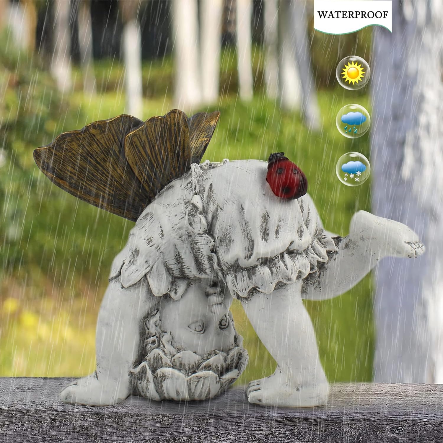 【DURABLE RESIN ORNAMENTS】Made of high-quality resin, this figurine is weather-resistant and won’t fade,this statue will look amazing even after exposure, rainstorm and strong wind, making it a long-lasting addition to your lawn sculpture collection.