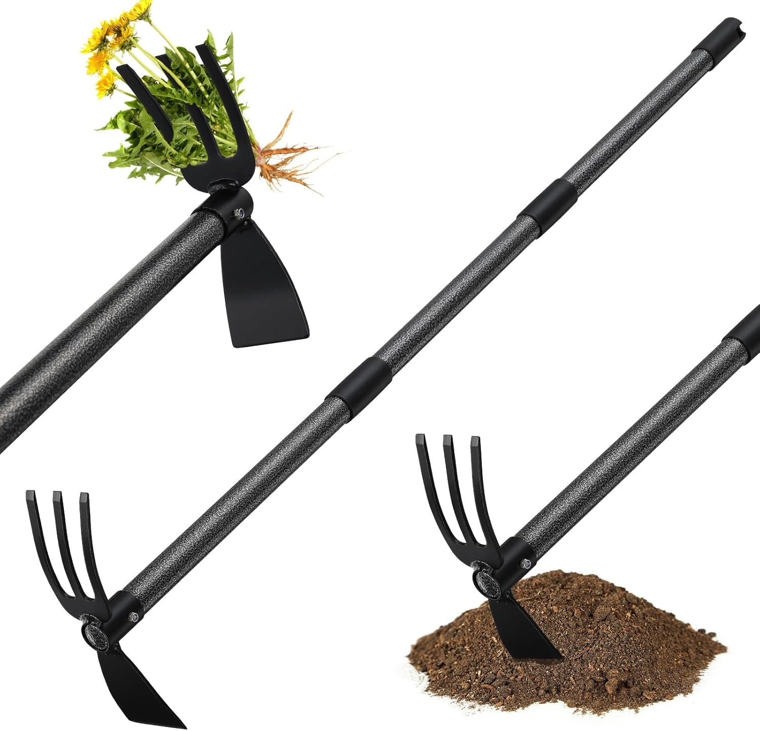 Hoe and Cultivator: This is a 2 in 1 hand garden hoe and cultivator combo with adjustable handle, perfect for gardening,landscaping,weeding,seeding,loosen soil,cultivate vegetables, uproot weeds. NOT for digging in hard soil