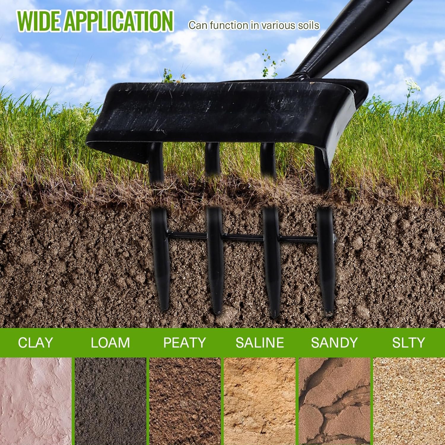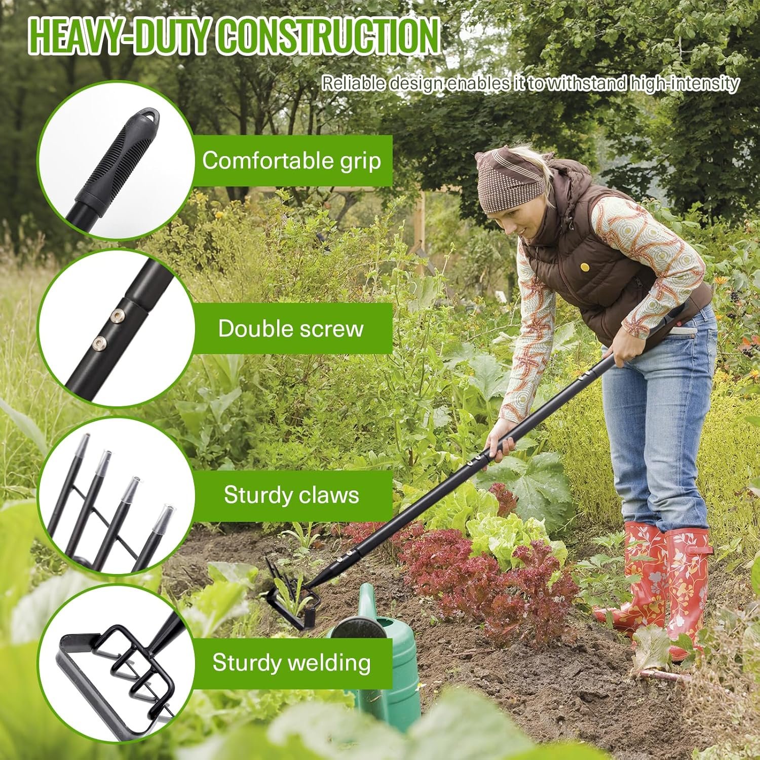 【Durable and Efficient】The head and handle of the weeding rake are built to last, a sharp and tough head can weed and loosen soil with ease in various soils.