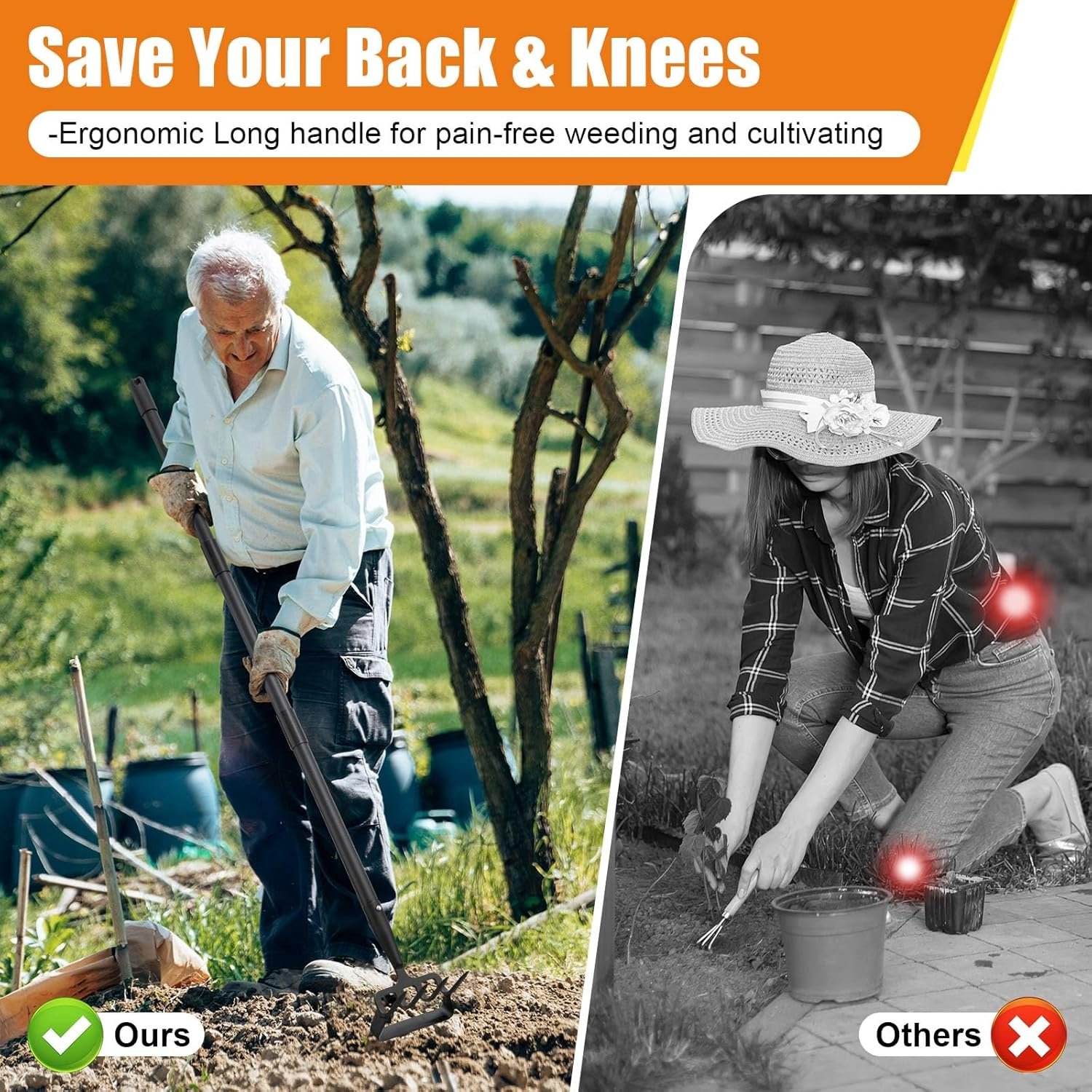 Built to Last with Premium Materials: Made from premium, durable steel, This action hoe is built to withstand tough gardening conditions, with rust-resistant materials ensuring long-lasting performance.