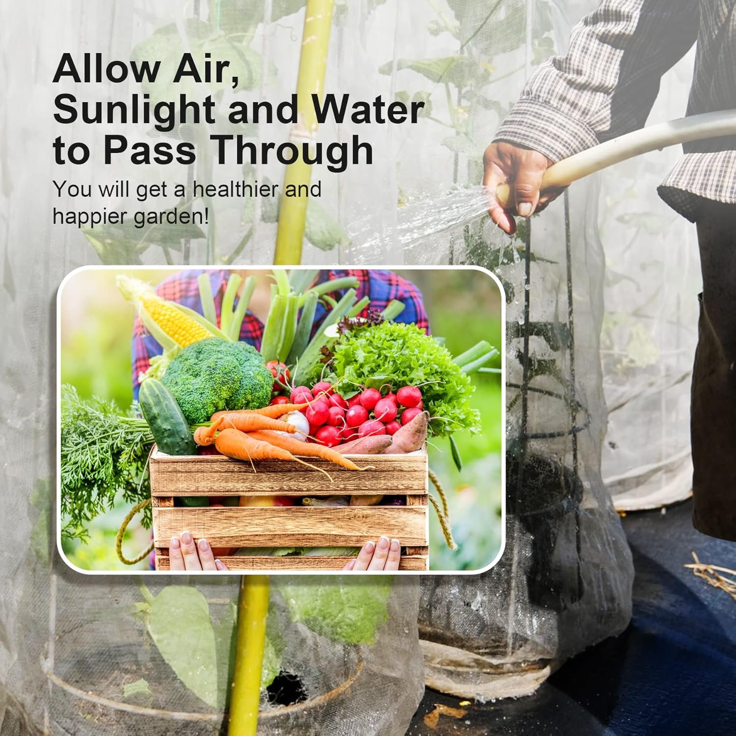 🥬Convenient to Use: Air, water and light enter through the net easily, you can put it on any garden hoops, beds or fruits or vegetable cages, no need to remove it when watering