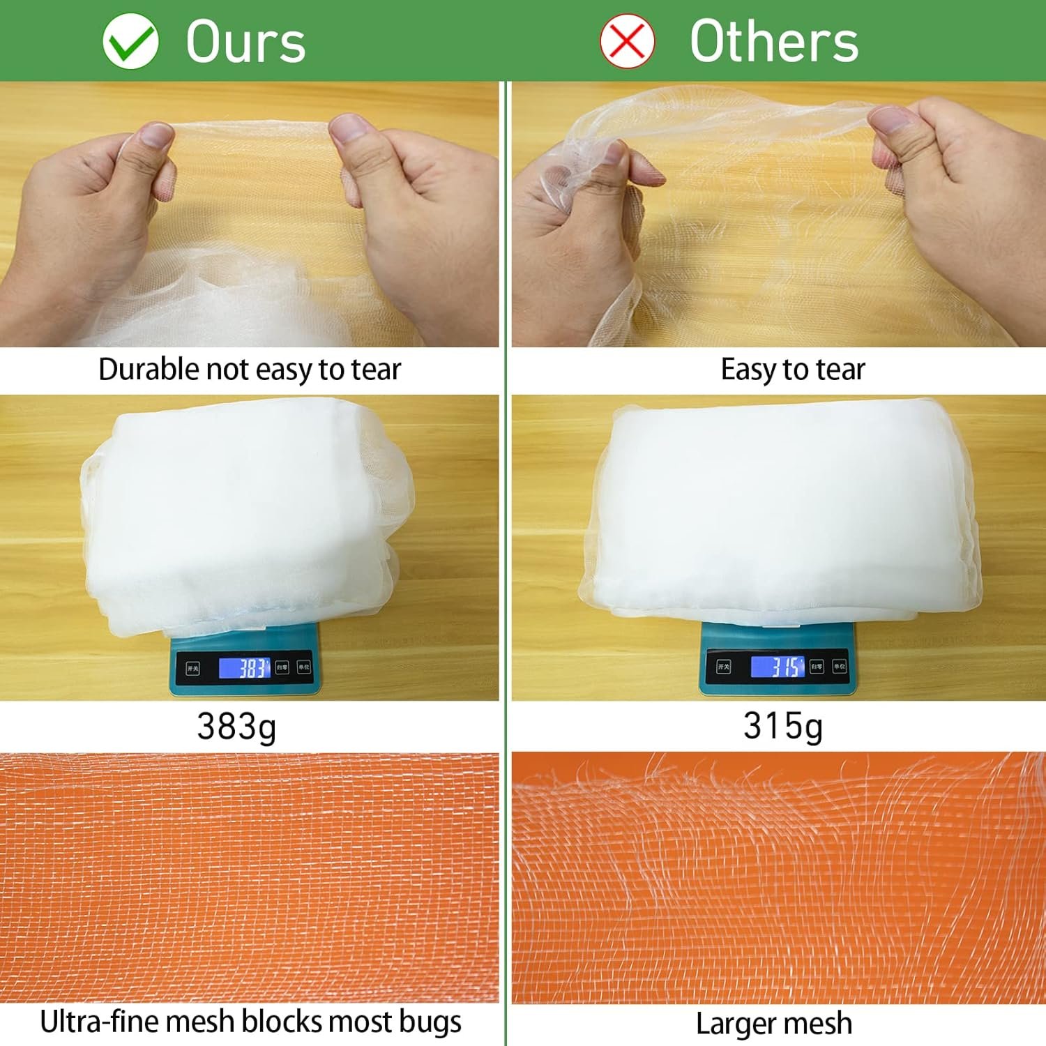 【Protect Your Garden with Ultra-Fine Mesh Netting】Keep pesky critters at bay with our top-quality bug netting for garden. With an ultra-fine mesh, it effectively blocks small evils, birds, and other animals from harming your vegetable, plants, fruits, flowers and other crops, giving your plants the protection they deserve.