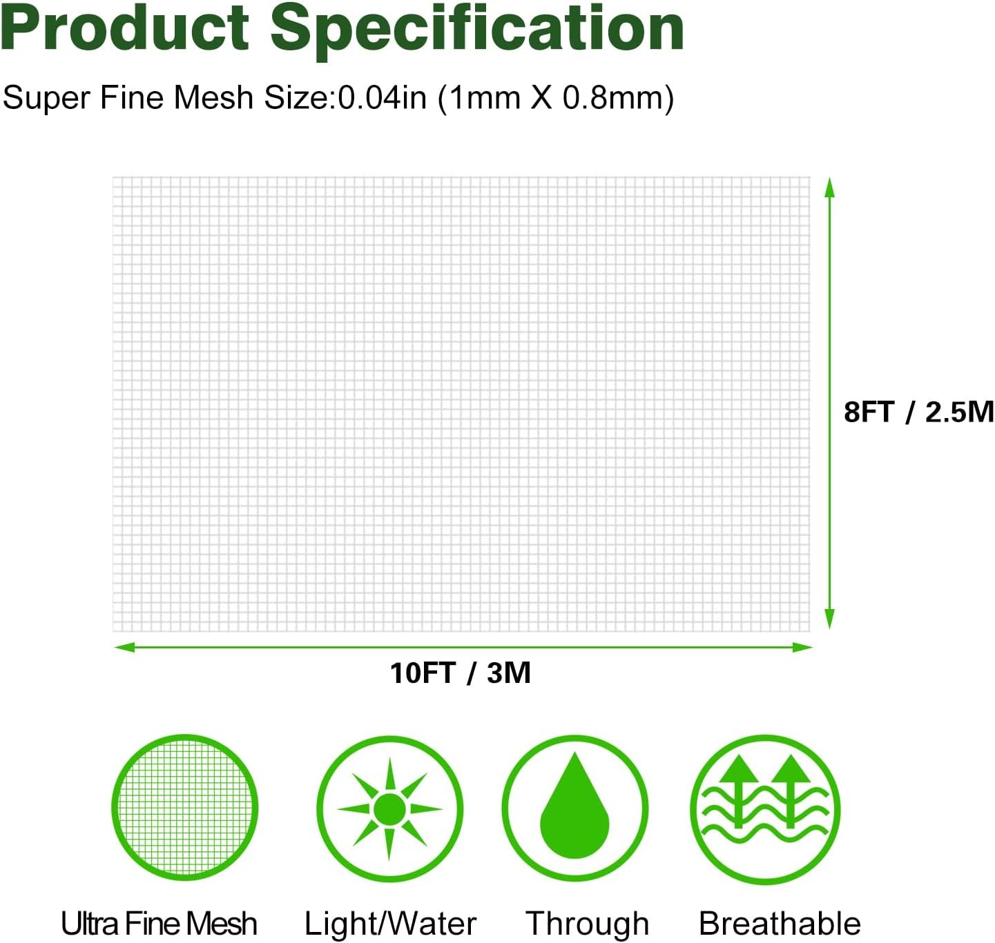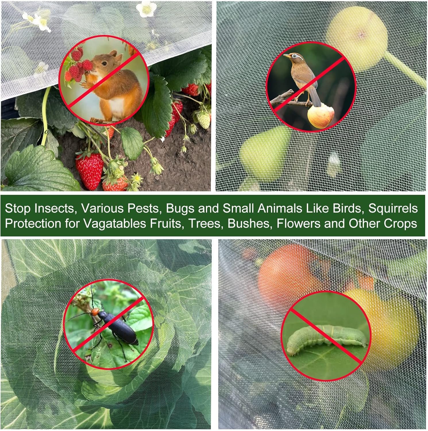 ULTRA FINE NETTING MESH: This Garden Netting Has Extra Fine Mesh Hole 0.8mm-1mm. The Mesh Barrier Effectively Prevent Birds and Other Small Animals Like Squirrels, Rabbits, Chickens. Provide Enough Protection for Plants All Growing Seasons.