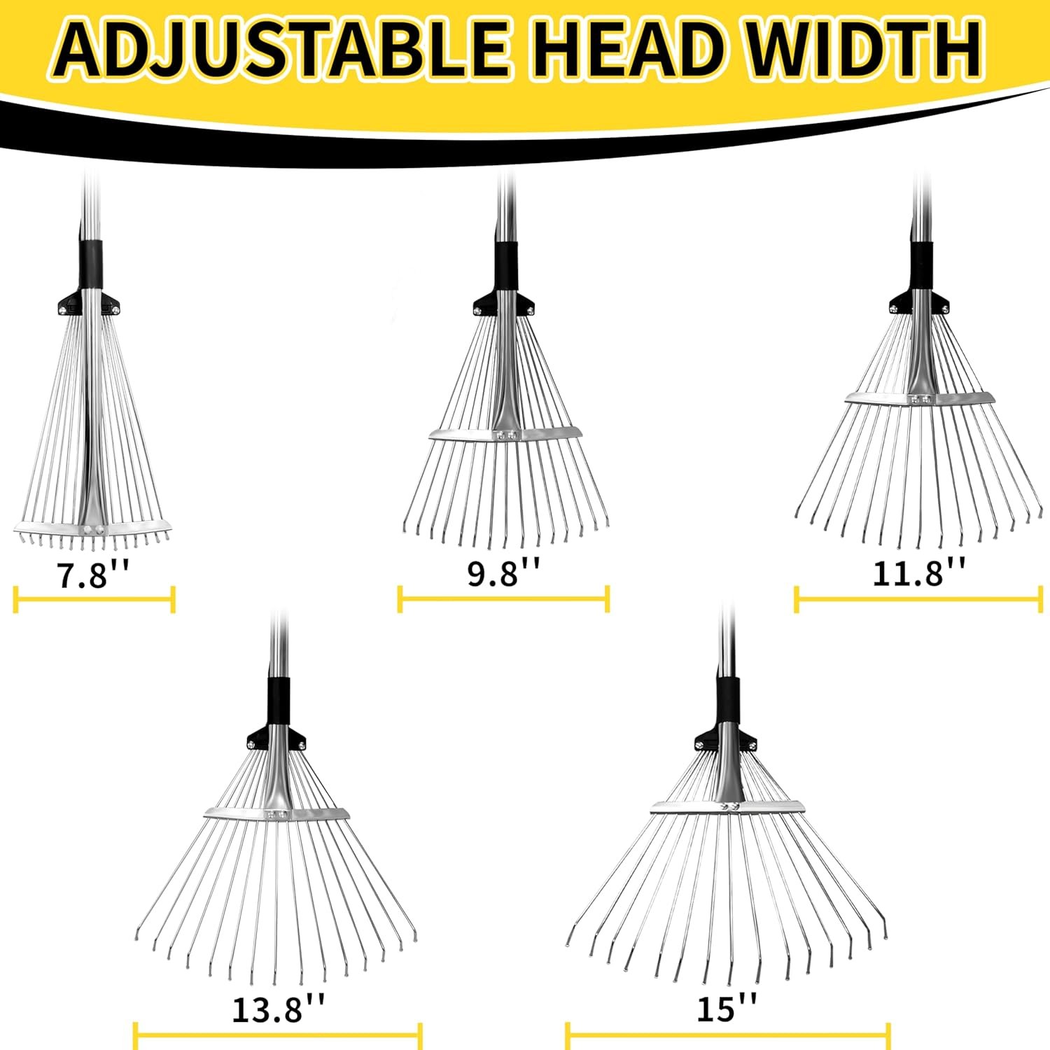 Say goodbye to back strain and awkward postures! The rake’s extendable handle adjusts from a compact 33 inches to an impressive 69 inches, catering to users of all heights and preferences. Shorter settings provide precision control for tight spaces like garden beds or under shrubs, while the extended length offers effortless reach across large lawns or around obstacles without bending. The ergonomic, non-slip grip ensures comfort during prolonged use, reducing fatigue and boosting productivity.Why juggle multiple tools when one can do it all? The rake’s innovative expandable head effortlessly adjusts from 8 inches for delicate work to 15 inches for rapid clearing. Narrow settings are perfect for precise debris removal between plants or in confined areas, while the widened head maximizes coverage on open lawns, saving time and energy. The seamless adjustment mechanism locks securely in place, ensuring stability during vigorous use.