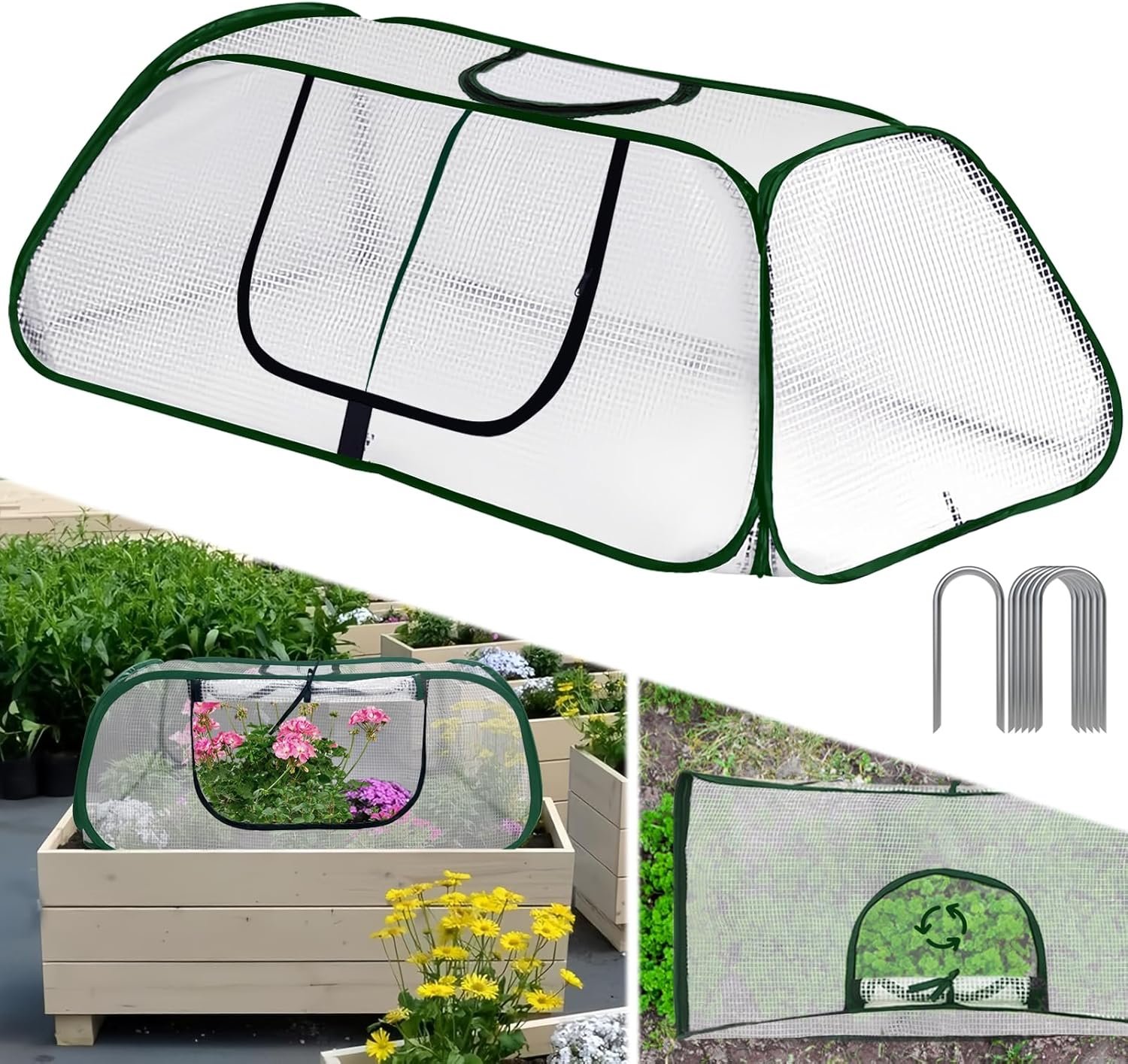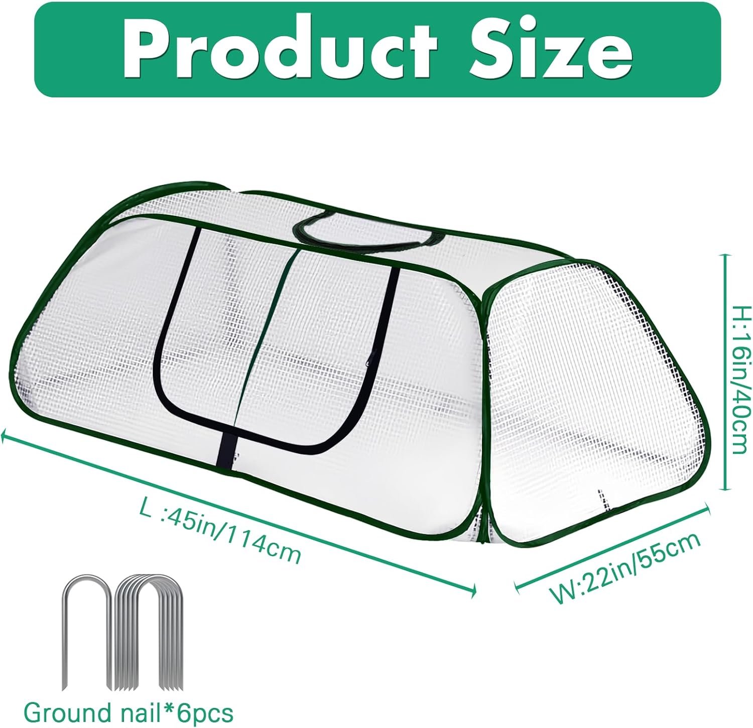 Product Details: You will receive 1pc garden beds plant covers, the size is 45″ L x 22″ W x 16″ H, with 6 pcs U-shaped ground nails, enough to meet your use needs