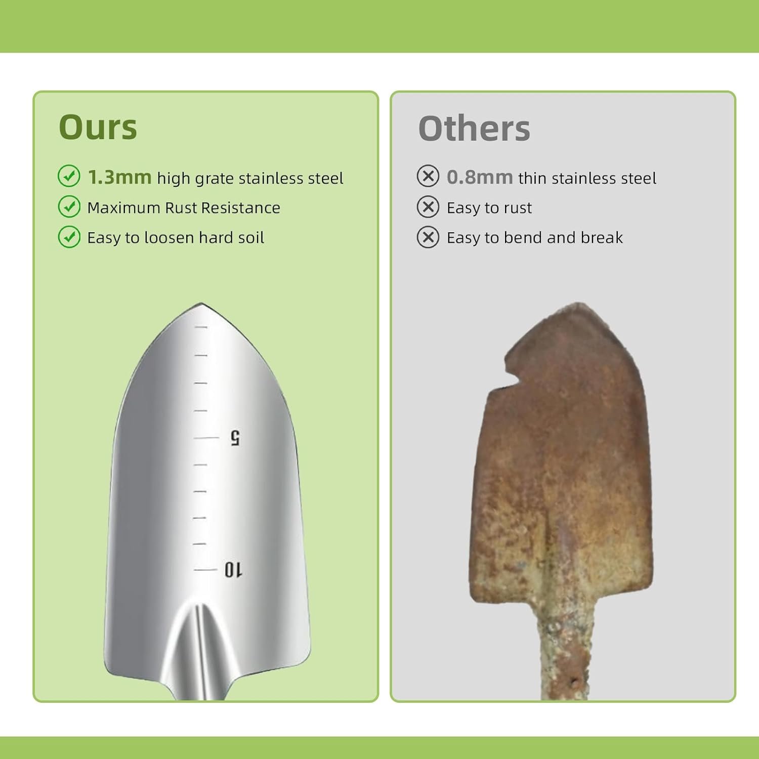 Premium Garden Set: These gardening tools are made of high-strength stainless steel, guaranteeing corrosion resistance and rustproof for incredibly tough, sharp, and sturdy that will last a long time.