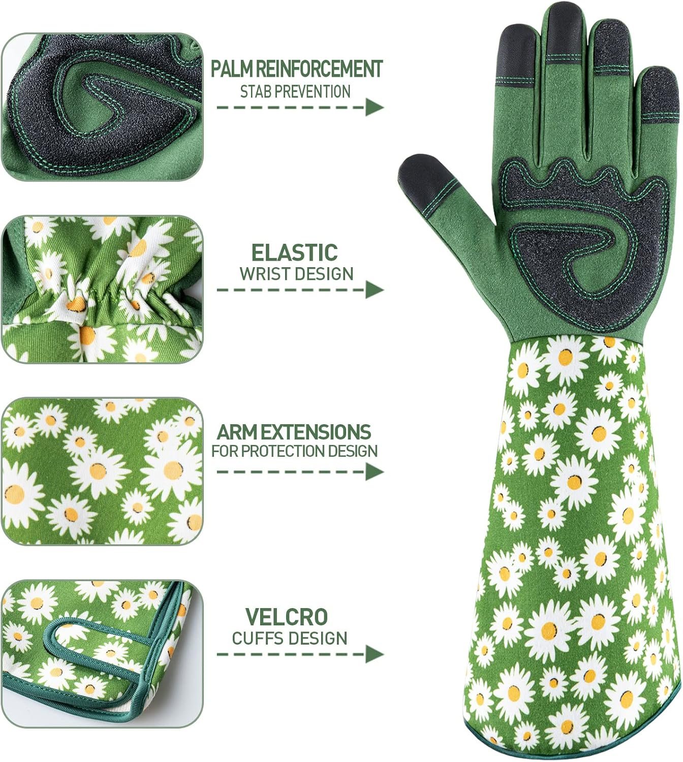 Customers find these gardening gloves effective at protecting arms and wrists from thorns while working in the yard. The gloves are well-made with thick material, comfortable, and beautiful in design, with one customer noting they’re particularly good for working with berry bushes. They appreciate the fit, with one mentioning the adjustable feature.