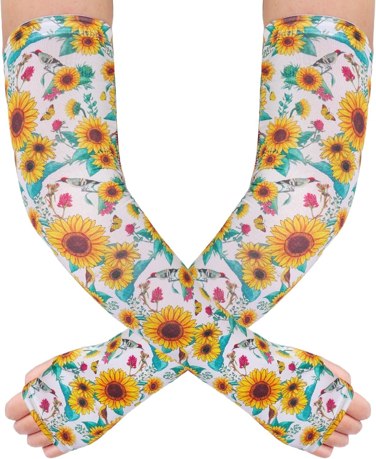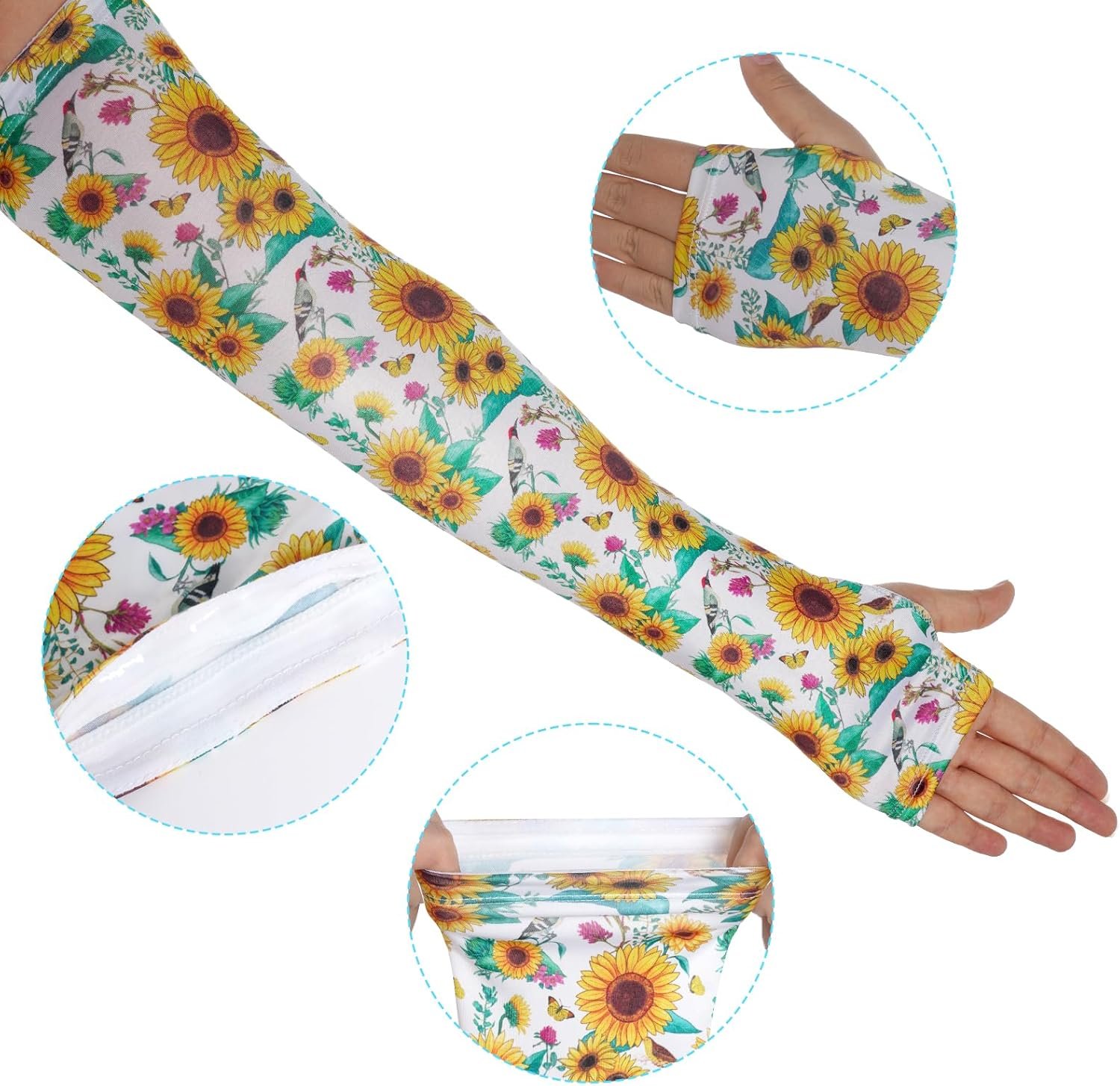 Gardening Sleeves, Garden Sleeves for Women Thorn Proof, Farm Sun Protection Arm Cooling Sleeves with Thumb Hole, Gardener Arm Protector Gloves (Sunflower)