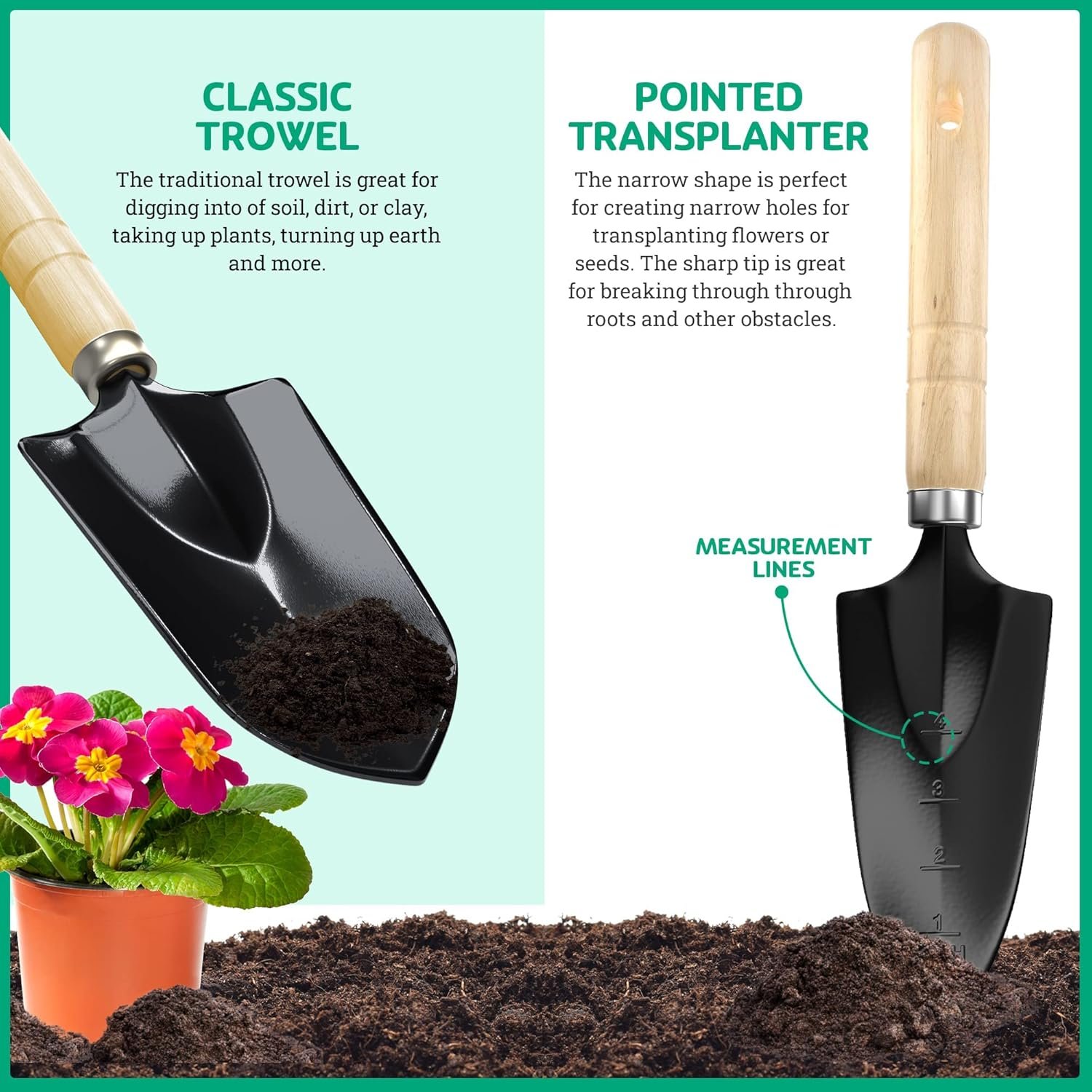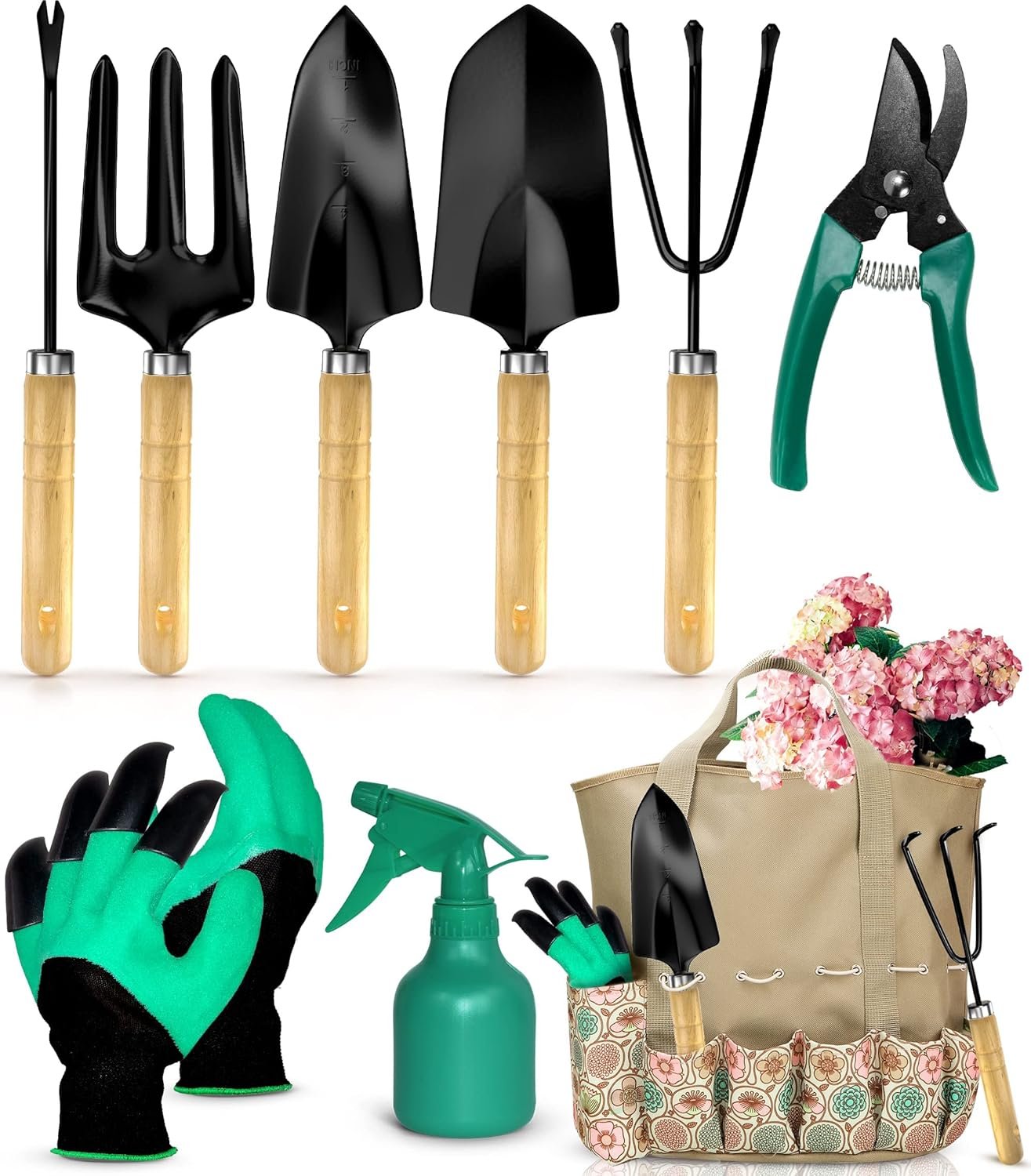 Gardening Tools Garden Tool Set, Stainless Steel Heavy Duty with Non-Slip Grip, Storage Tote Bag, Outdoor Hand Tools, Ideal Garden Tool Kit Gifts for Women and Men