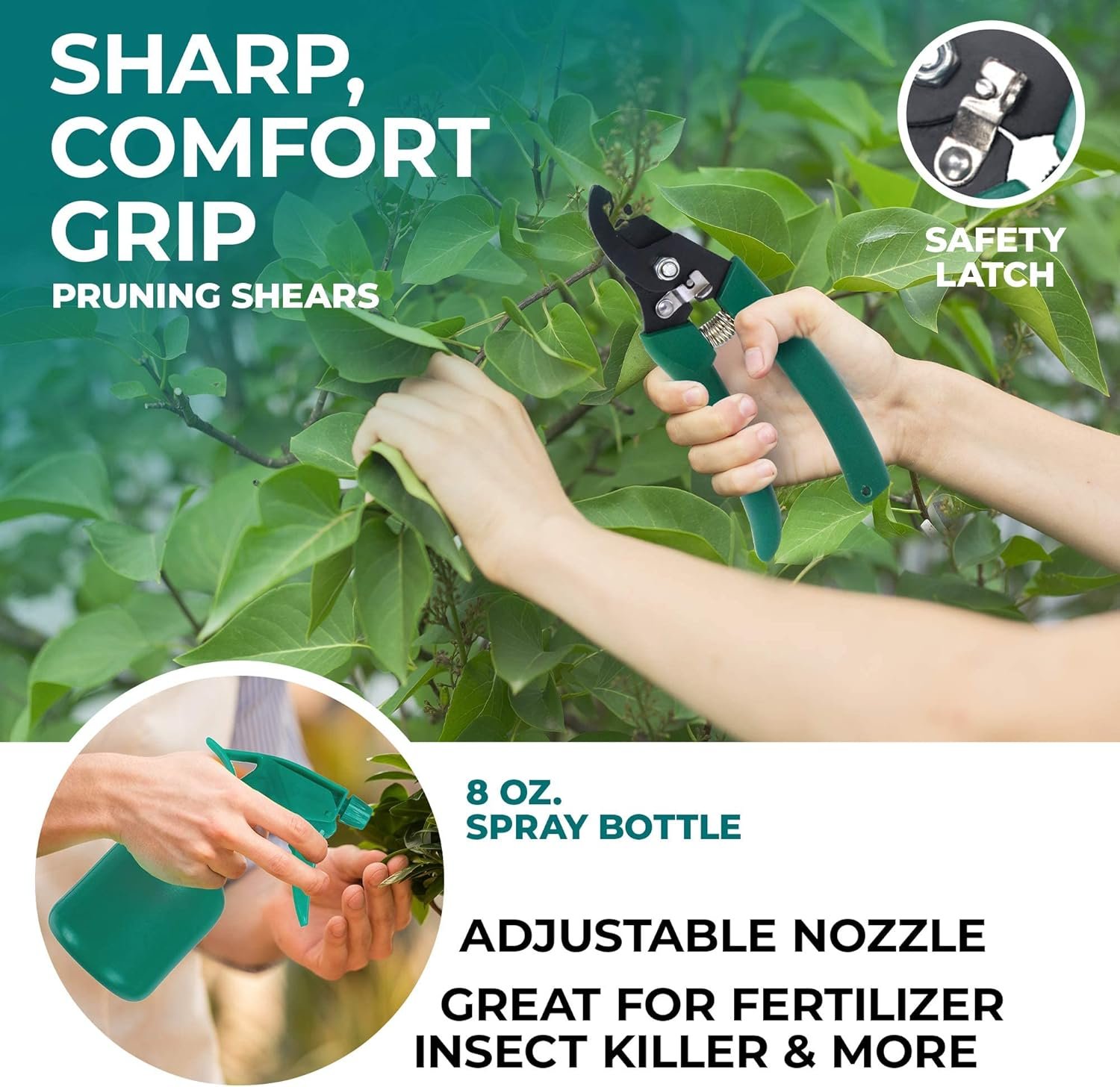 WHATS INSIDE – all essential garden tools including a Gardening Shovel, Trowel, Fork, Rake, Weeding Tool, Shears, Claw Gardening Gloves, Water Mister