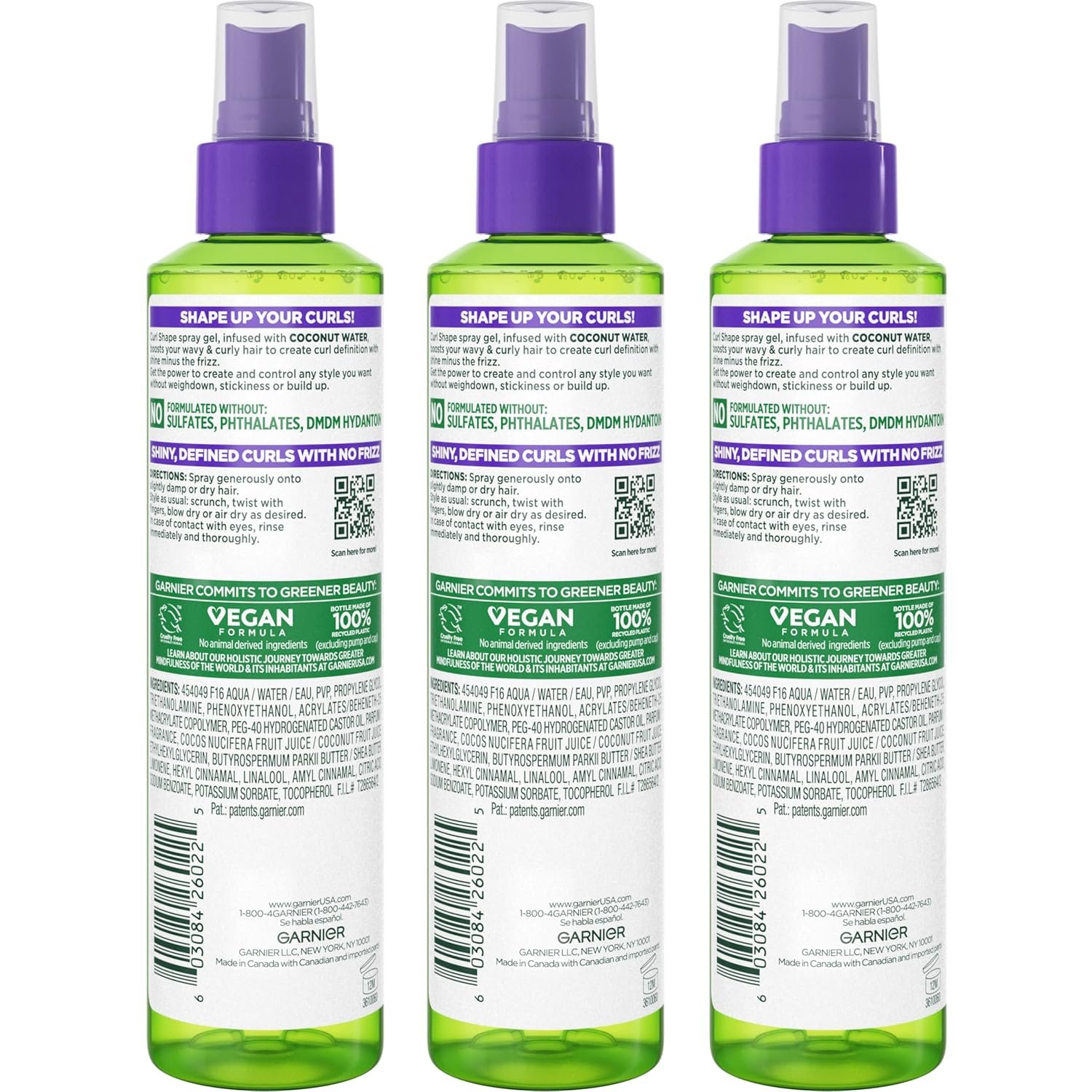Garnier Fructis Style Curl Shape Defining Spray Gel for No Frizz, 8.5 Fl Oz, 3 Count (Packaging May Vary)