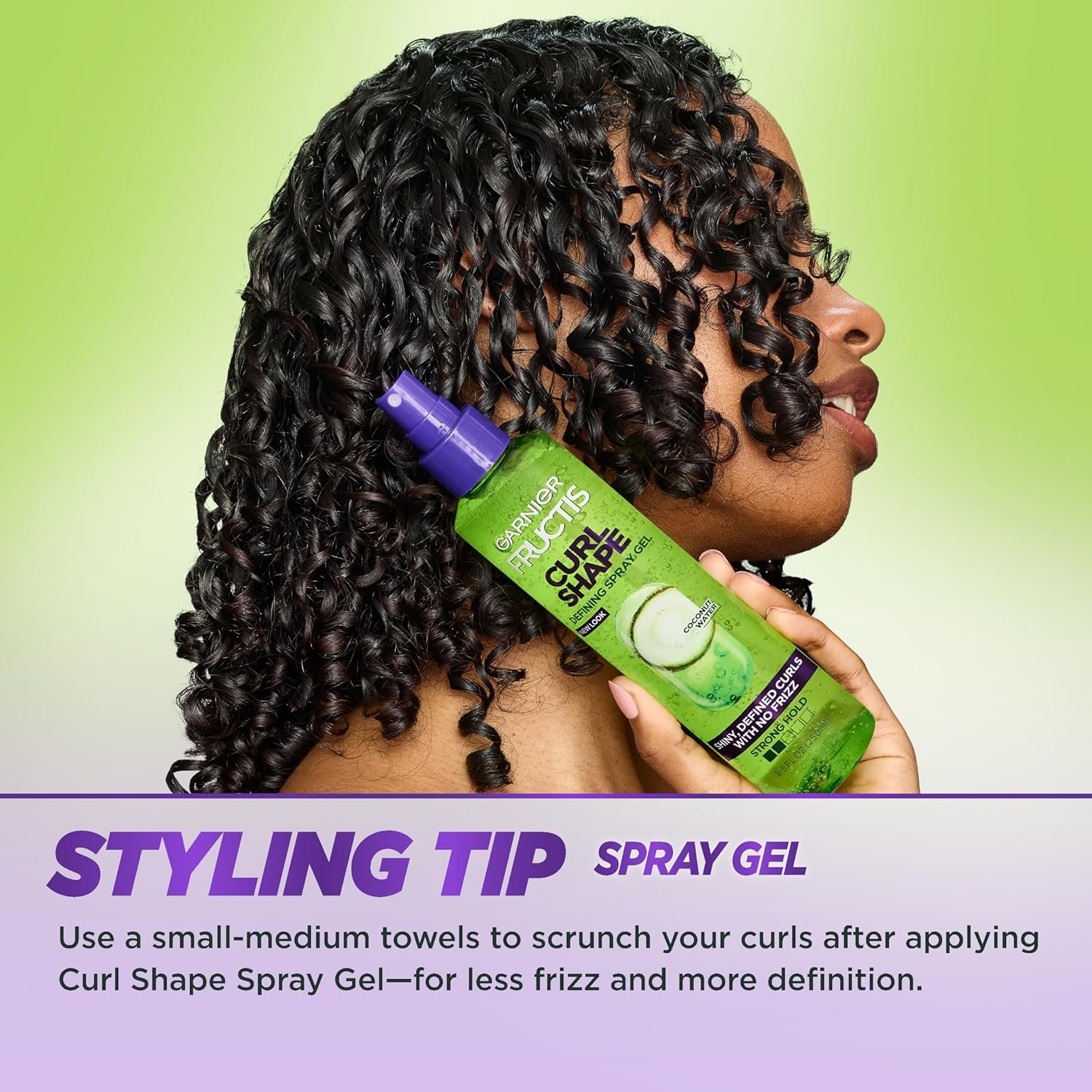 Garnier Fructis Style Curl Shape Defining Spray Hair Gel with nourishing shea butter, boosts your wavy, permed, or naturally curly hair to create curl definition with shine minus the frizz; Get the power to create and control any style you want