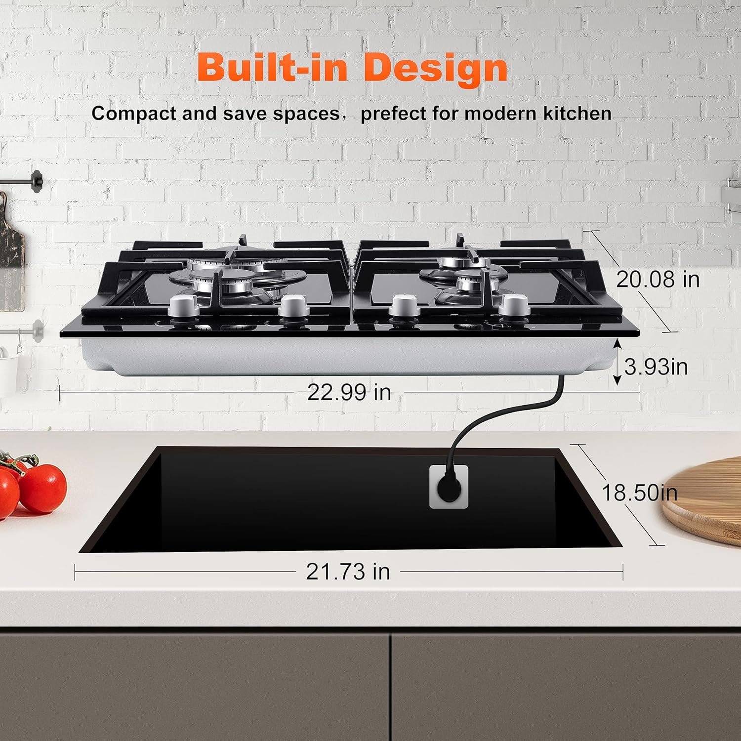 【Product Dimensions and 1-Year Quality Warranty】Product size: 22.99″ W x 20.08″ L x 3.93″H, Cut out size: 21.73″ Wx 18.5″ L. Please verify this propane cooktop is the right size for you. We provide a 12-month warranty for the gas cooktop. If you are not satisfied with the product, we will provide a free exchange guarantee, please feel free to contact us if you have any problems.