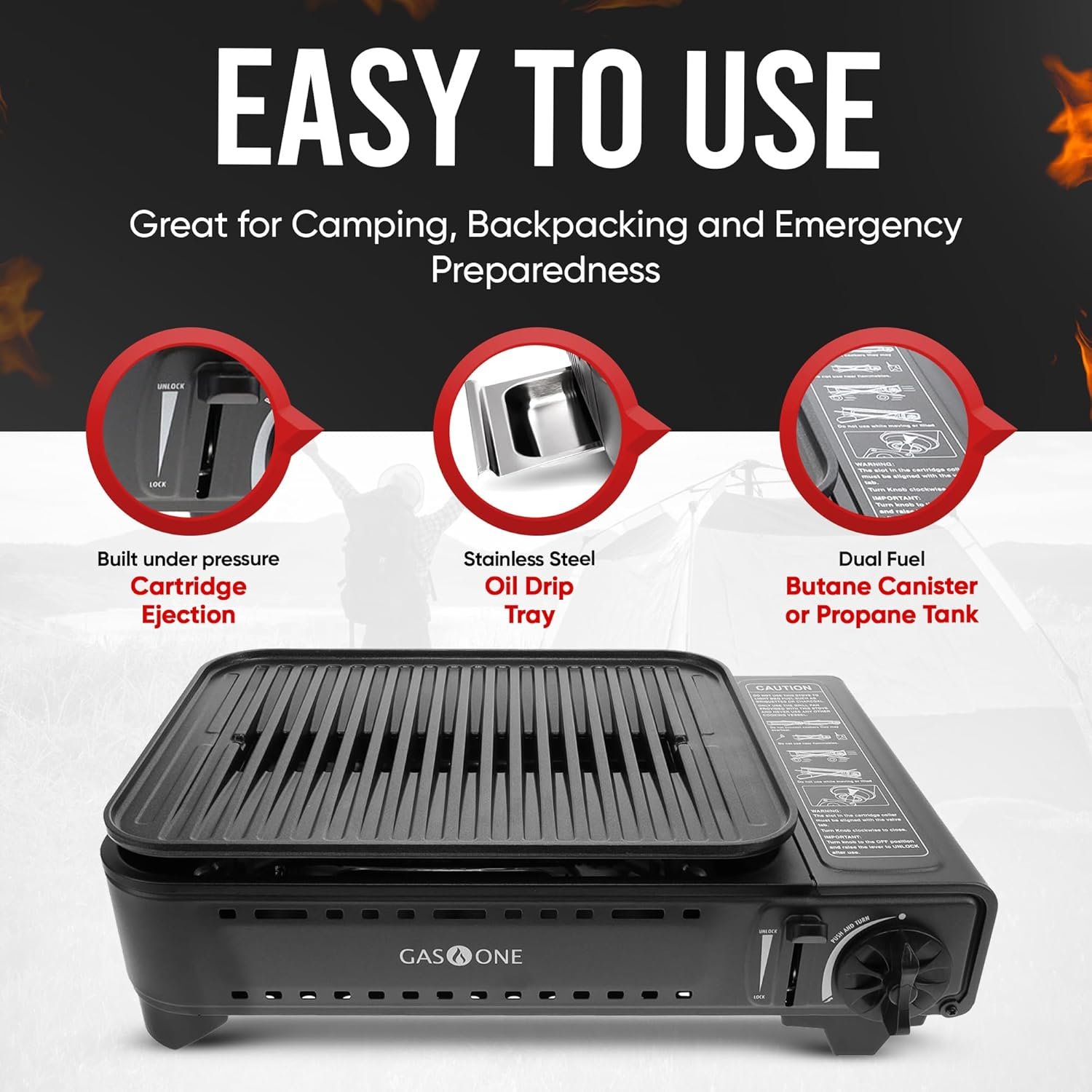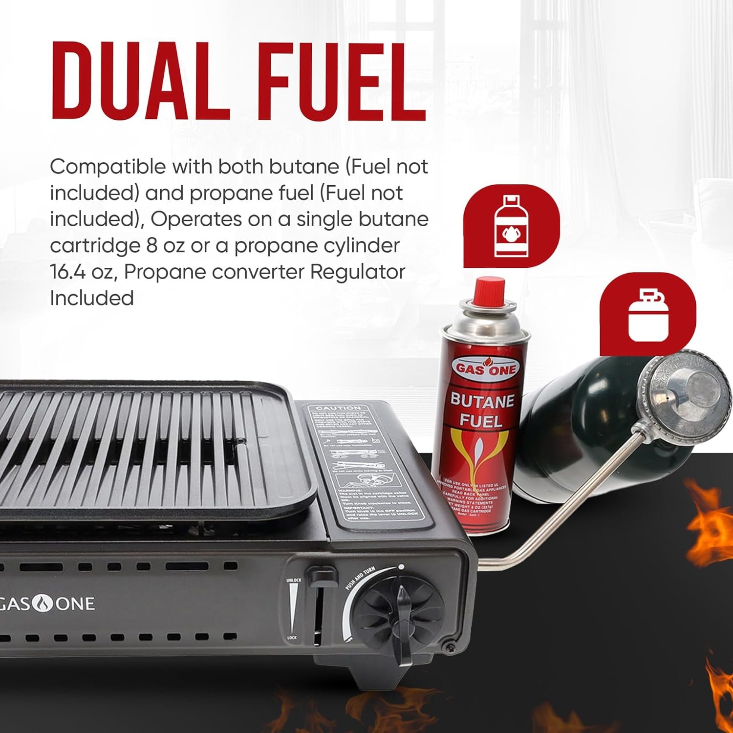 GasOne Propane or Butane Grill Stove GS-2400P Dual Fuel Portable Camping Grill Gas Stove with Carrying Case