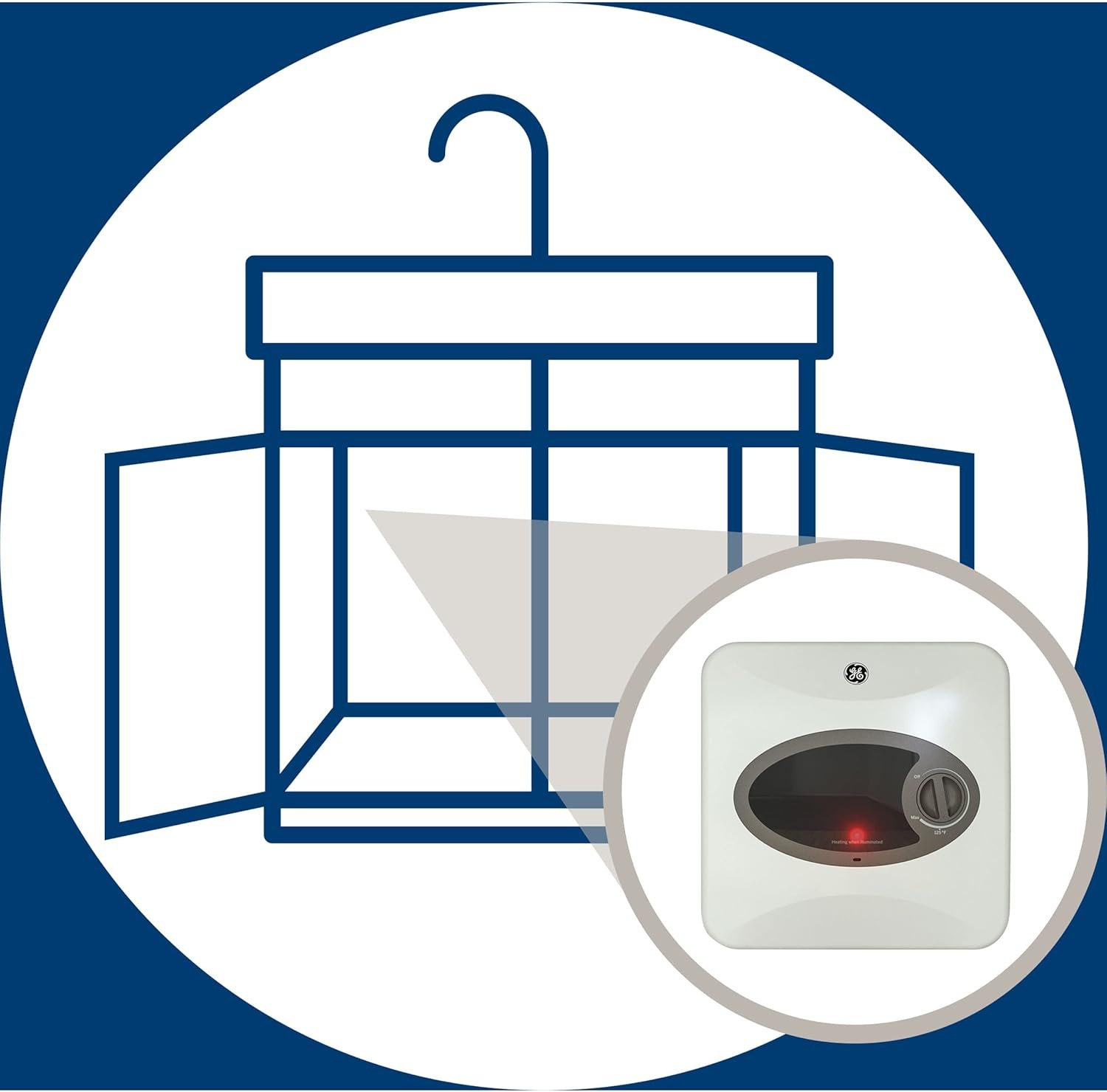 Bring hot water to where you need it most with the GE Appliances Electric Point of Use Water Heaters. The compact design makes the unit ideal in limited spaces like kitchens, bathrooms, laundry rooms, cabins, RVs, garages, and sheds so you can mount it on the wall or floor for hot water where you need it. This 120-volt system can work as a standalone unit, or inline with another water heater to boost long pipe runs or washing machines. Easily adjust water temperature and power at the turn of a knob with simple, intuitive controls. With stainless steel heating elements and anode rod, you will have reliable and ultra durable system that resists rust and corrosion for the life of your water heater. The water heater uses standard 1/2-in NPT water connections for simple installation.