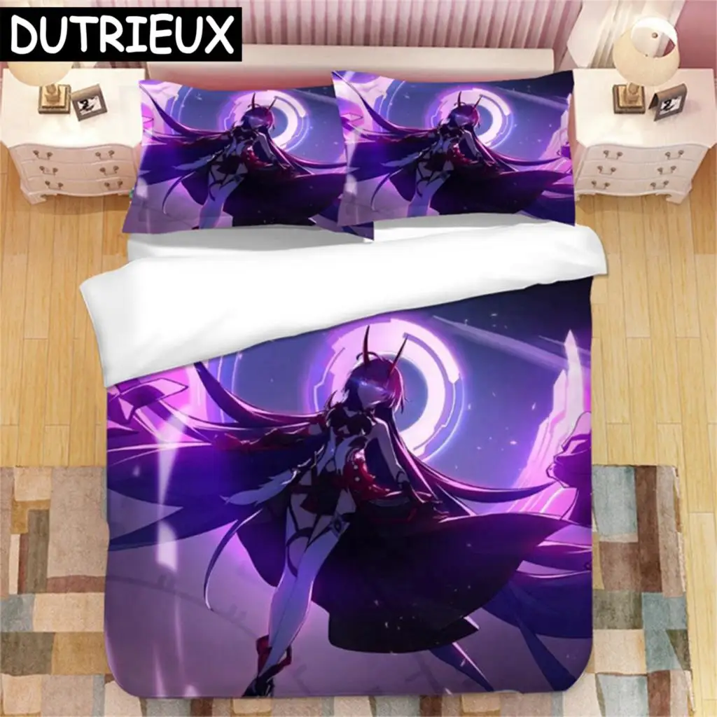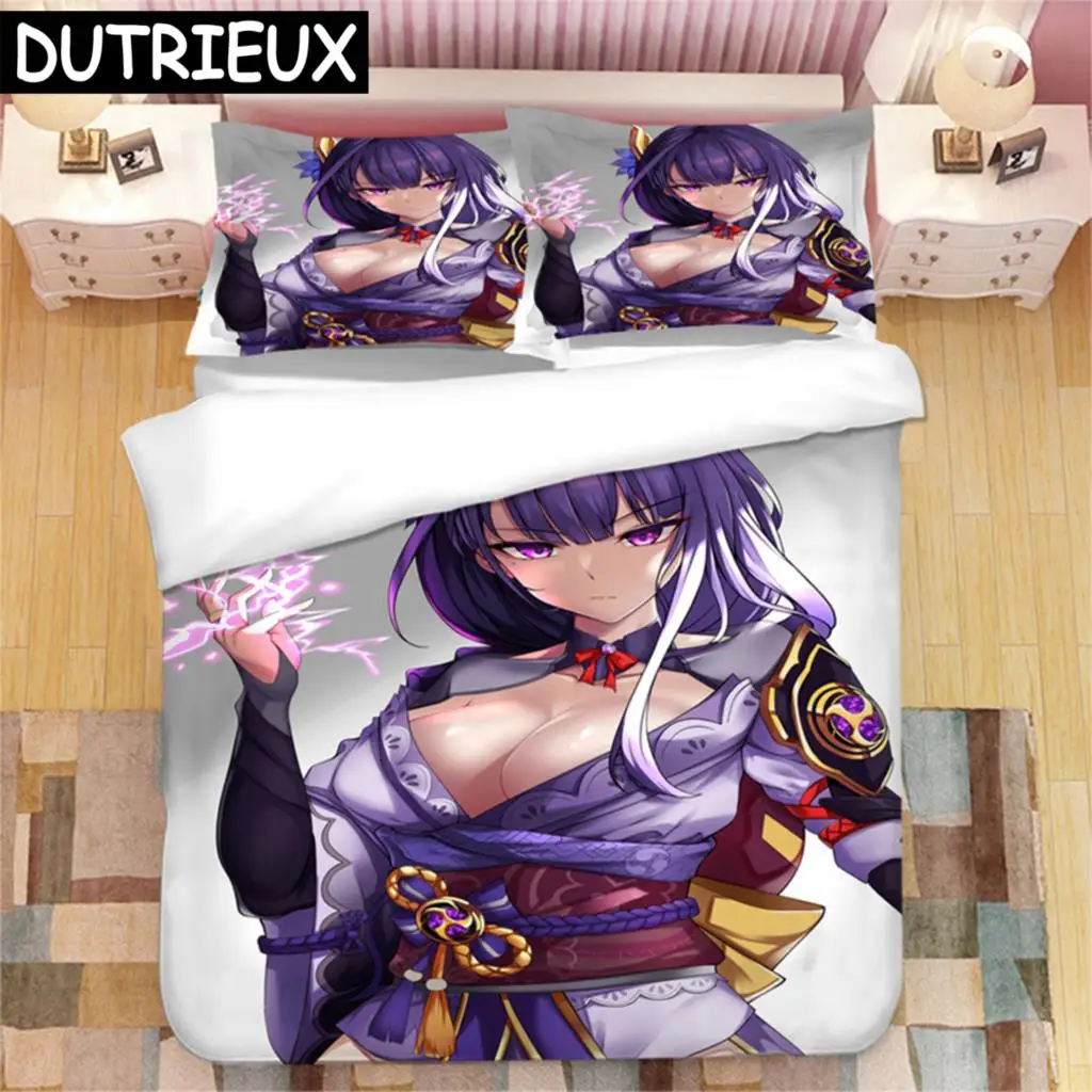 Genshin Impact Raiden Shogun 3D Printed Bedding Set Duvet Covers Pillowcases Comforter Bedding Set Bedclothes Duvet Cover