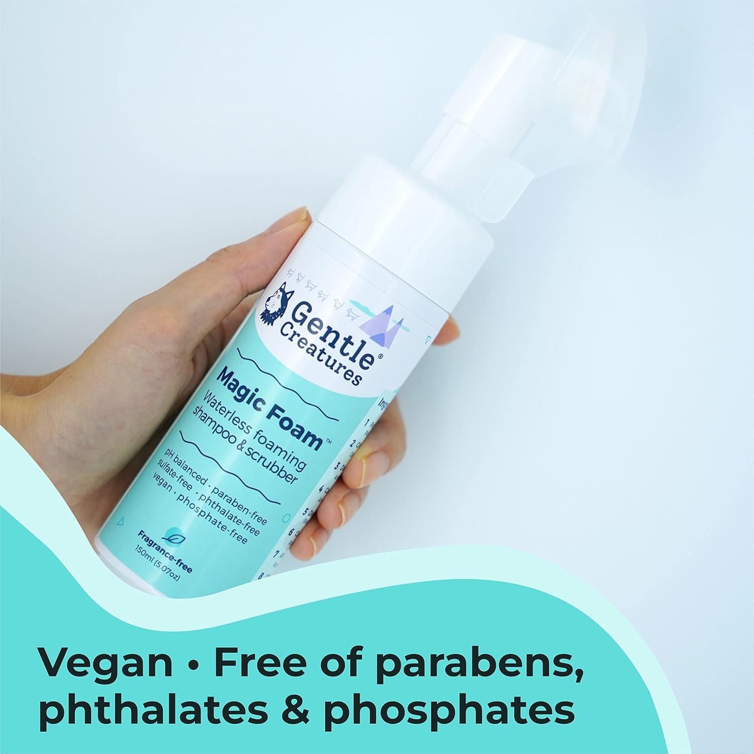 GENTLE CREATURES Magic Foam – Scrubber – Sulfate-Free, Waterless Shampoo Paw Cleaner for Dogs, Cats, Pets – Dry Shampoo, Foot Cleaner Brush – with Orange, Odor Control Wash – Good for Puppy
