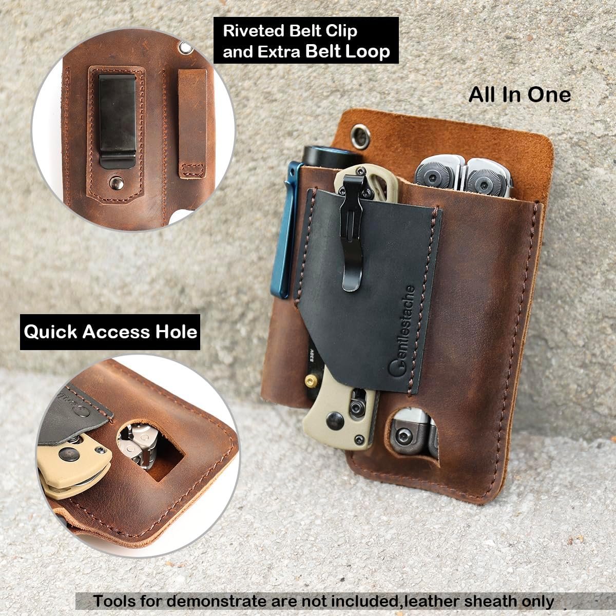 Gentlestache Leather Multitool Sheath – Belt Clip EDC Belt Organizer – Leather Multi Tool Holster for Belt – Multitool Holder