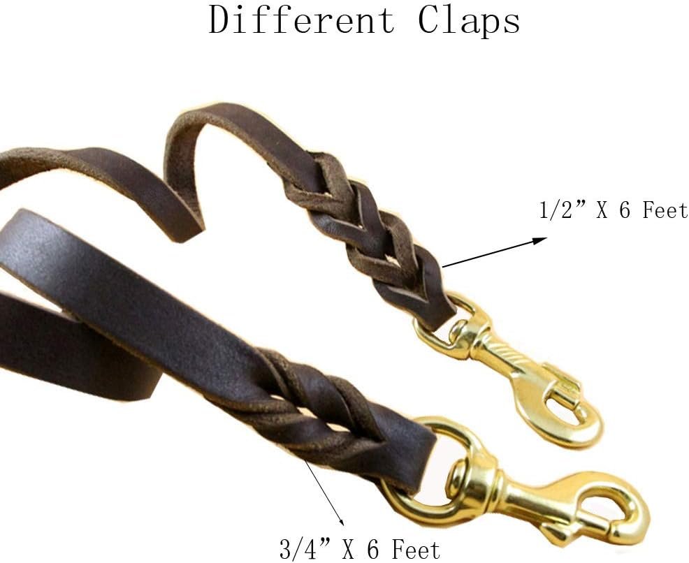 Genuine Leather Dog Leash,4 Feet Braided Heavy Duty Leash,Soft and Durable for Small Medium Walking and Trainning.