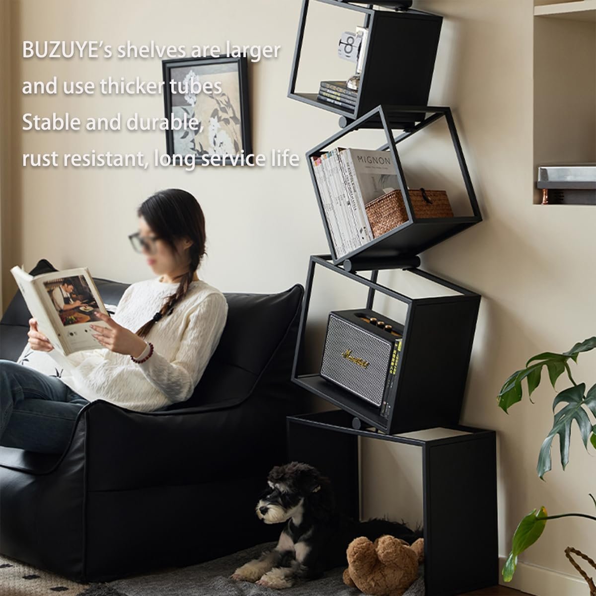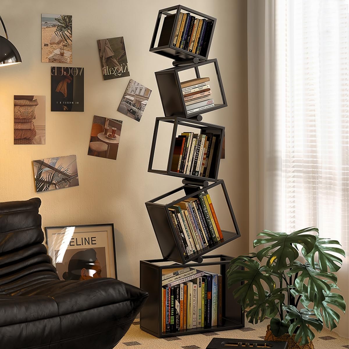 【Versatile Functionality】The space saving bookshelf come in various sizes, perfect for storing books, DVDs, and vinyl records, displaying decorative items, and even showcasing artwork. Its open design allows for easy access and multiple viewing angles, making it a standout feature in your home decor. Whether it’s nestled in a living room corner or taking center stage in a bedroom, this versatile bookshelf seamlessly complements any interior style.