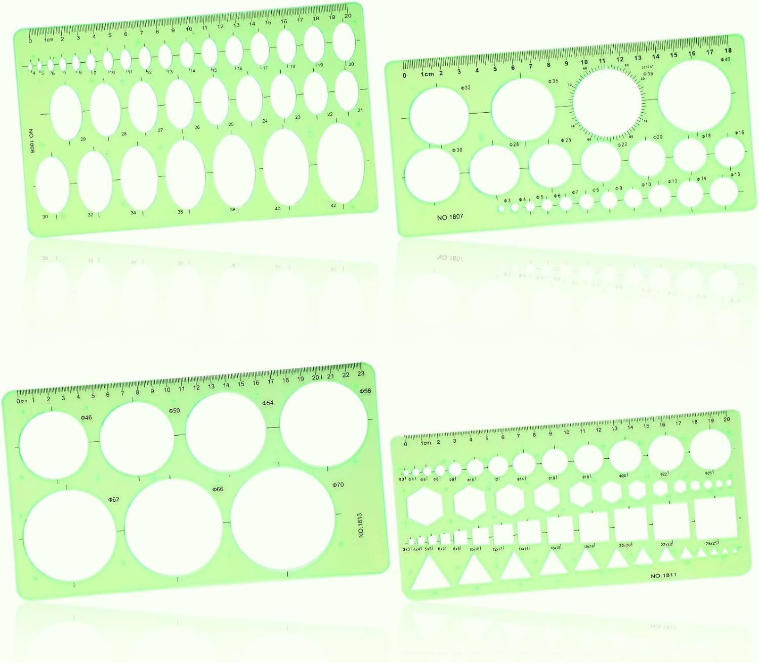 【High-Quality Materials】: Our drawing stencils are made of high-quality plastic to ensure that each drawing is accurate and precise, and to ensure long-term use. Shape stencils are designed with translucent green, allowing you to easily align and draw shapes such as cylinders and triangles, easily and accurately improving your creation.
