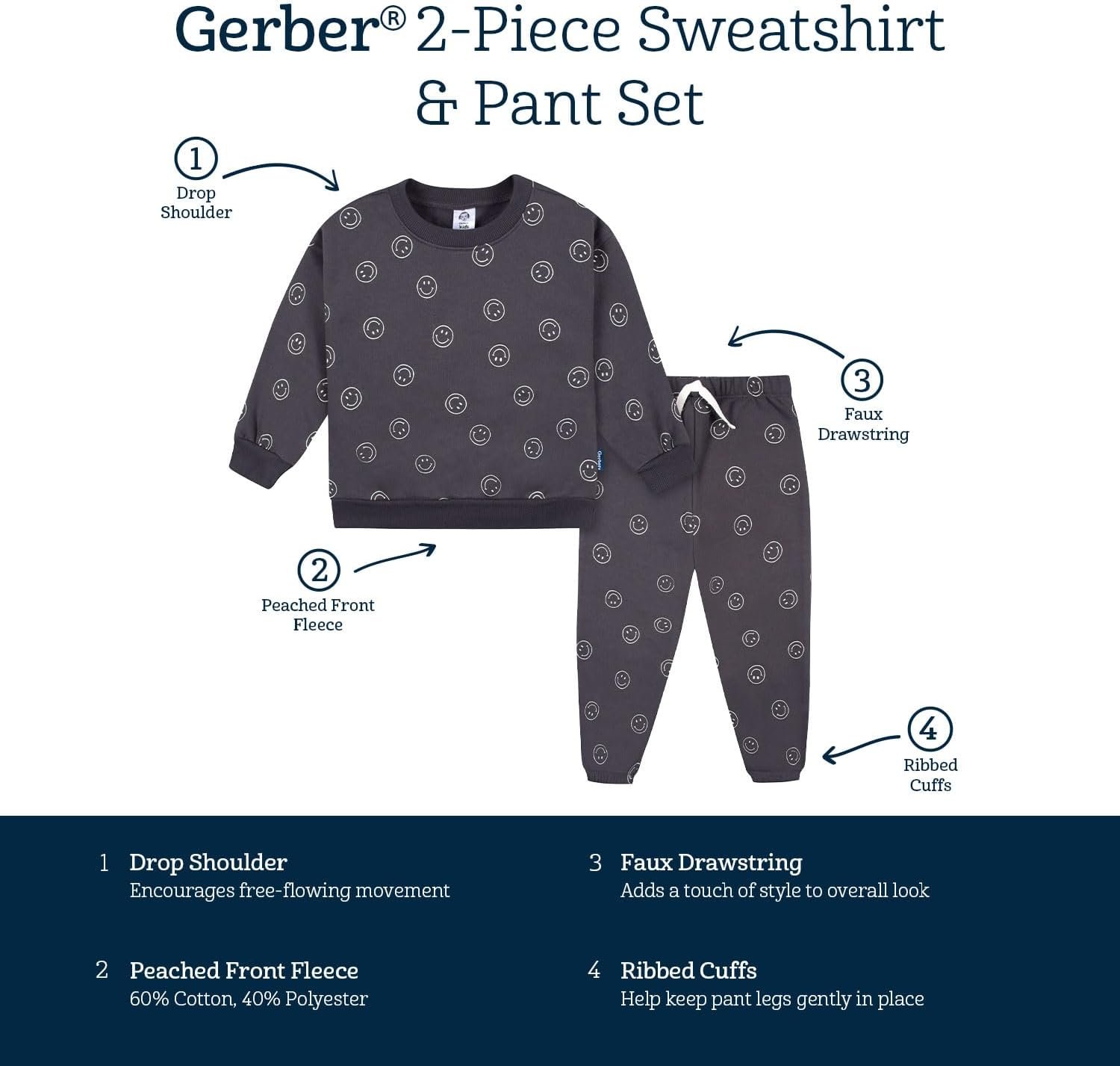 Gerber baby-boys Baby Boys Toddler 2-piece Fleece Sweatshirt and Jogger Set