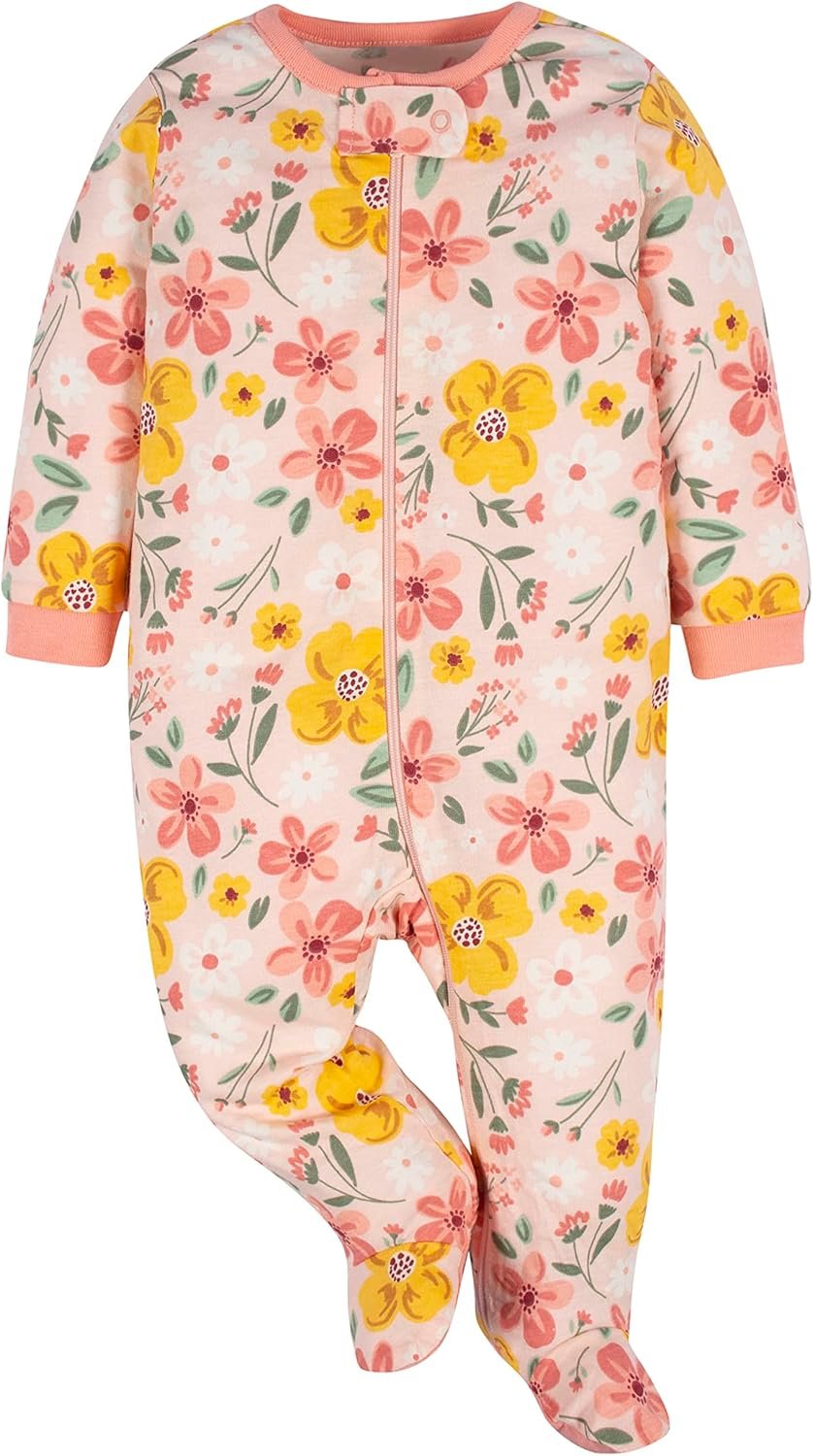 Gerber Sleep ‘n Plays are the ultimate footie pajamas baby is sure to love! These soft footies are made with 100% cotton, a comfortable fabric that’s perfectly breathable to prevent irritation against baby’s delicate skin. They’re appropriate to use as newborn footie pajamas as they’re made to comply with all safe sleep standards. They’re also available in sizes all the way up to 6-9M to fit older or larger babies. Each Gerber Sleep n’ Play features a zipper down the front of the outfit to allow for easy and fast diaper changes. This zipper makes the baby sleeper incredibly easy to put on as well as to take off. Atop the zipper is a safety tab with a snap to keep the zipper held in place. This reduces irritation caused by baby’s chin being poked by the zipper. These baby sleepers are footed to add extra warmth which is wonderful for sleepy time as well as if there is a chill in the air. It also means no fooling around with baby socks! These footie pajamas kids will love to wear to bed because of their supreme comfort as well as cute and fun patterns. Available in assorted colors and patterns, they’re suitable baby girl sleepers as well as baby boy sleepers. Babies love the comfortable feel and parents love how cute they look! But these Sleep n’ Plays aren’t just for sleep! They’re wonderful comforatble, casual outfits to wear during the day. They allow babies mobility and provide warmth. They’re perfect for play but are cute enough to be worn out on the town! These outfits are perfect to wear on a stroll outside, to the grocery store, to day-care, or to grandma and grandpa’s house! The possibilities are endless! The versatility of these outfits truly gives them a spectacular value that all parents will appreciate. They make an excellent gift for any baby boy or baby girl you know and love! Gerber provides high-quality products that are easy and convenient for parents as well as cute and comfortable for baby. Gerber provides safe products that parents can trust.