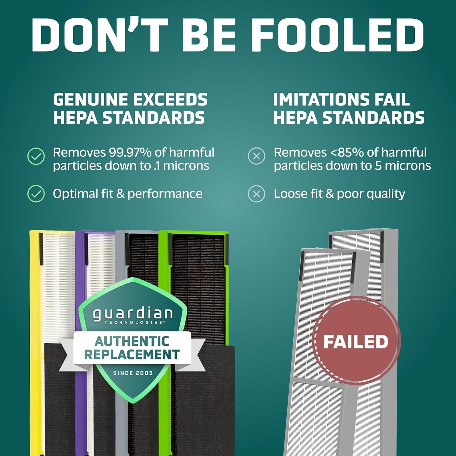 The GermGuardian Difference: Genuine air purifier HEPA filters offer a certified fit and maximum filtration, unlike off-brand filters which frequently fail HEPA testing standards, fit incorrectly, reduce efficacy, and may damage your air purifier