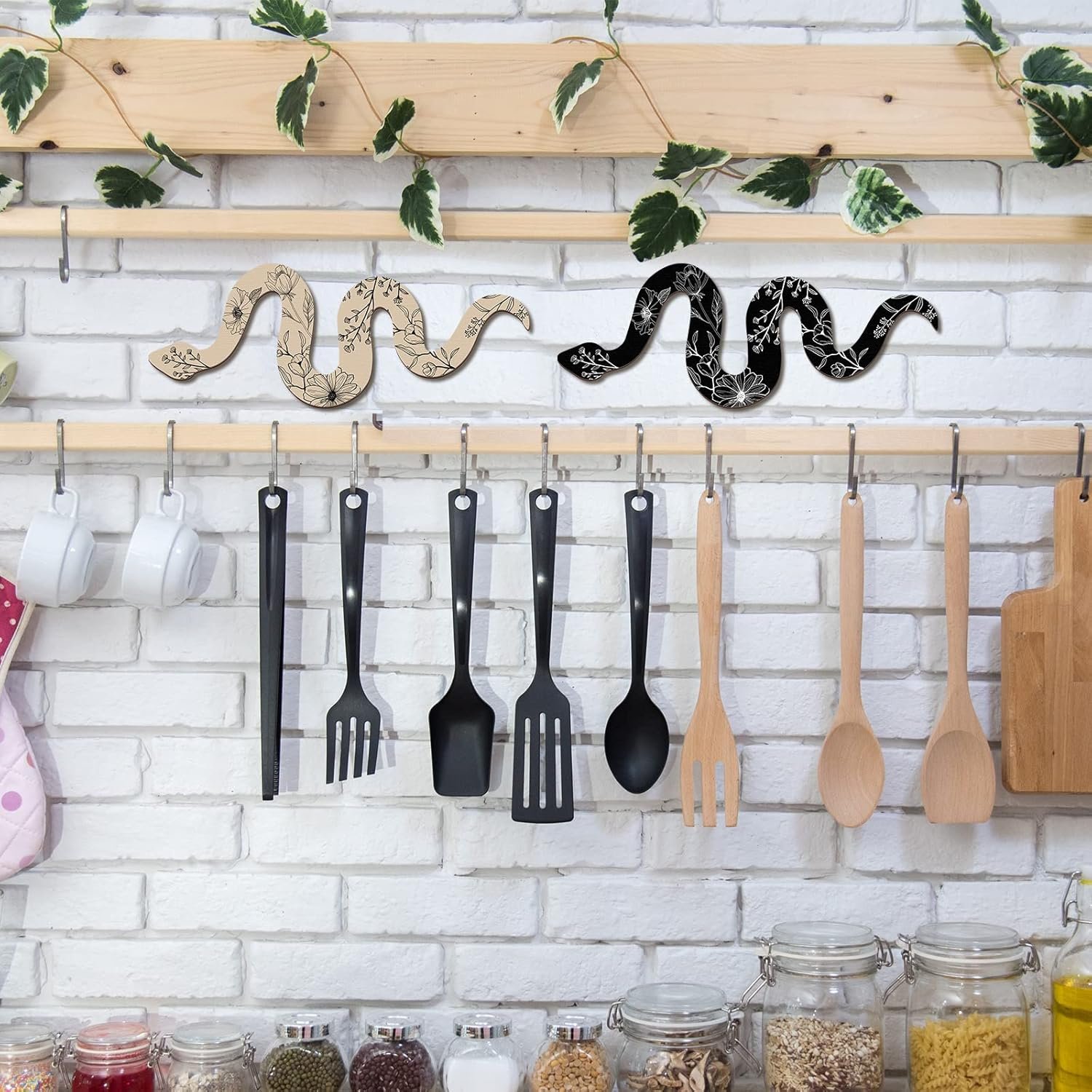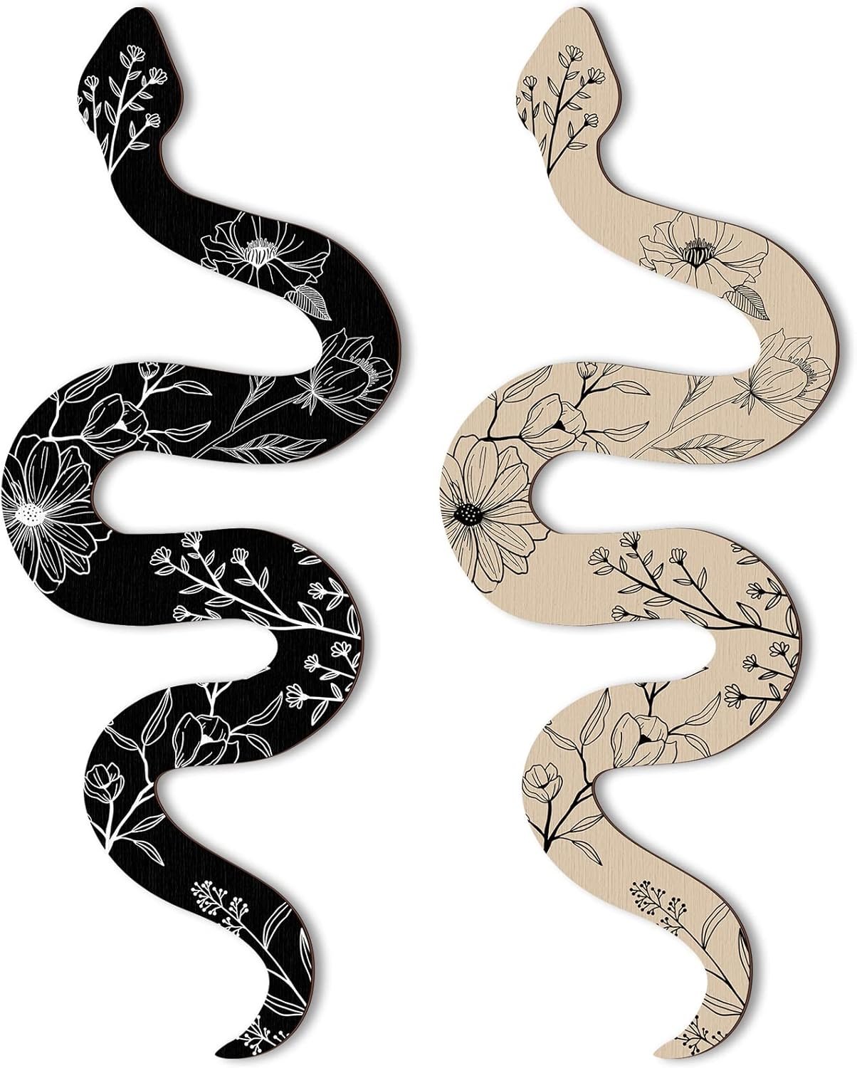 Lovely Rustic Wood Snake Room Decors: the 2 pieces floral snake wall decors are available in 2 colors, light natural and black, and the natural and mysterious rustic decors are ideal for a bohemian witch’s house