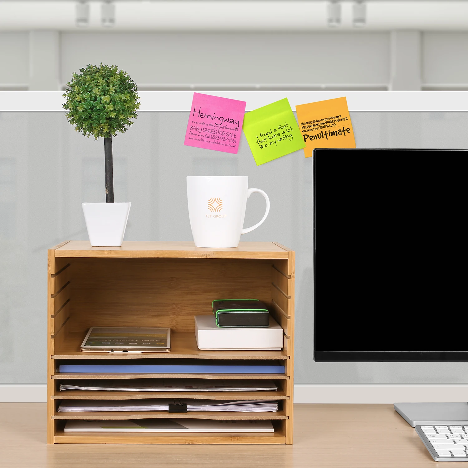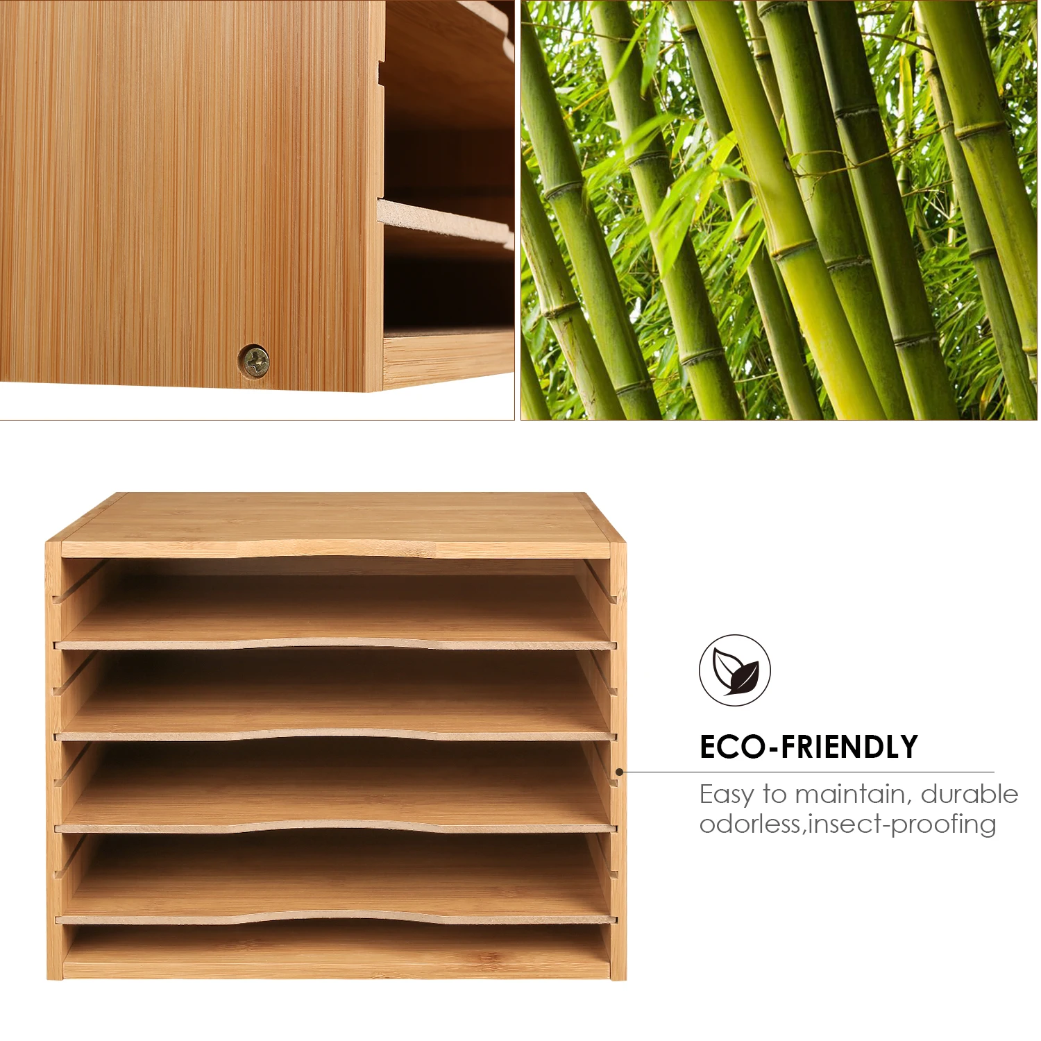 Getone Office File Tray, Bamboo Desk Tidy Organiser, File Sorter, 5 Tier Document/Paper/Letter Tray 36x25x26cm