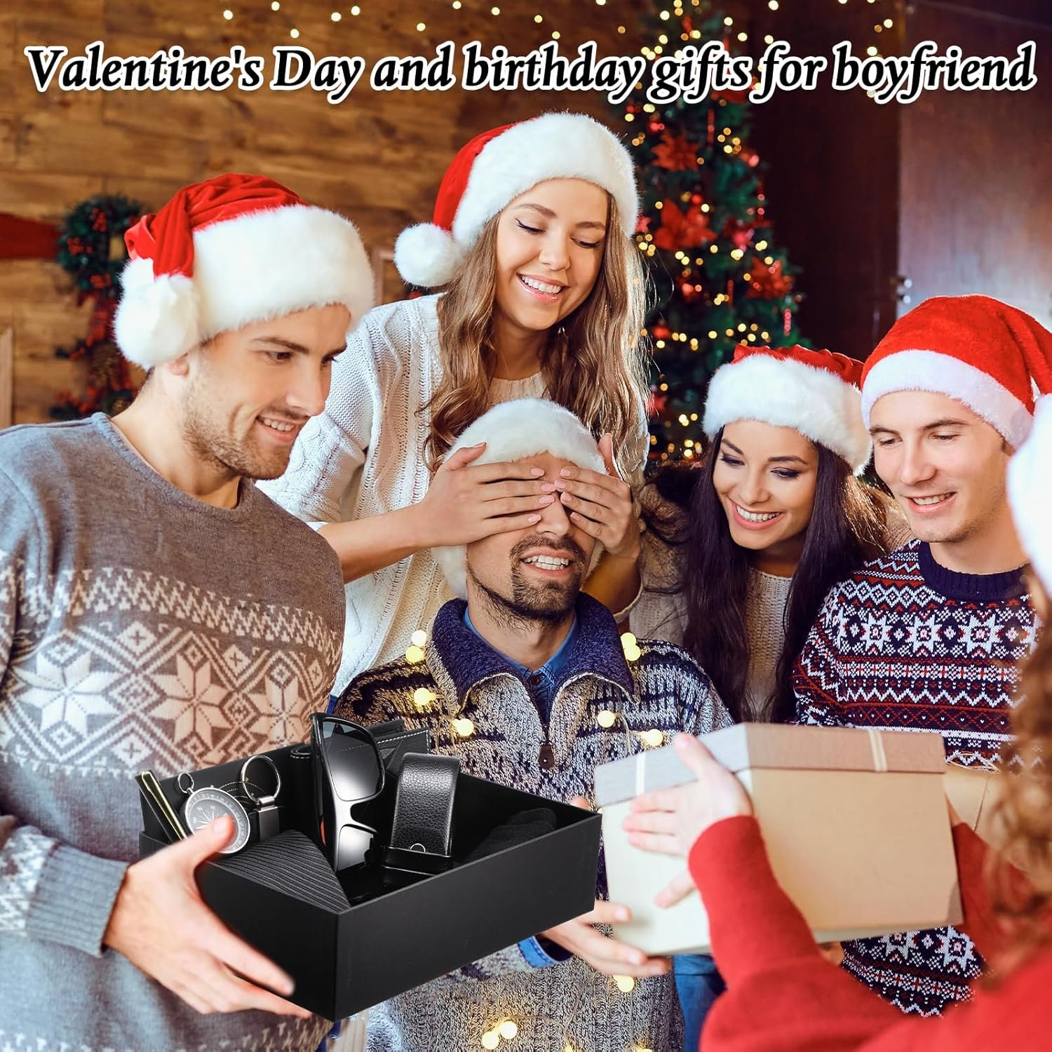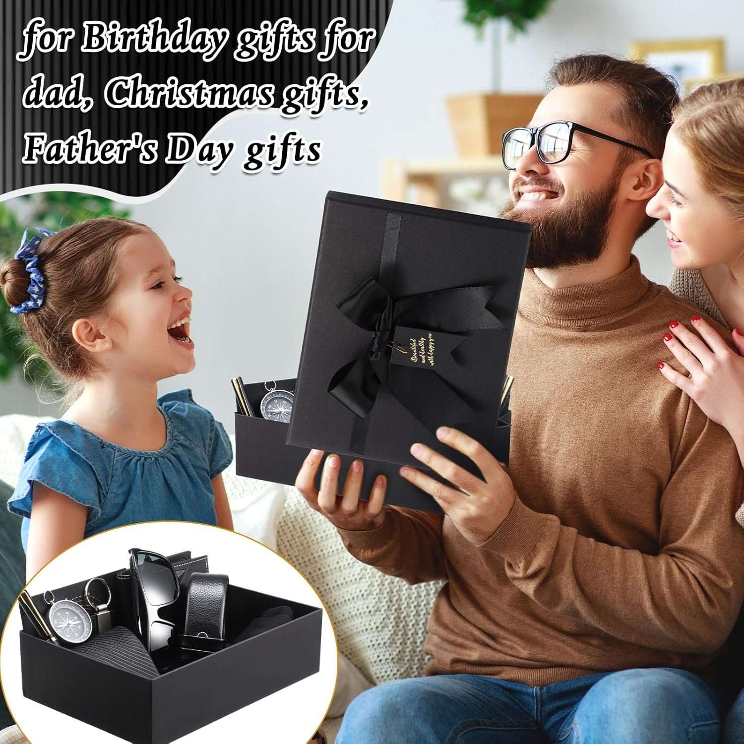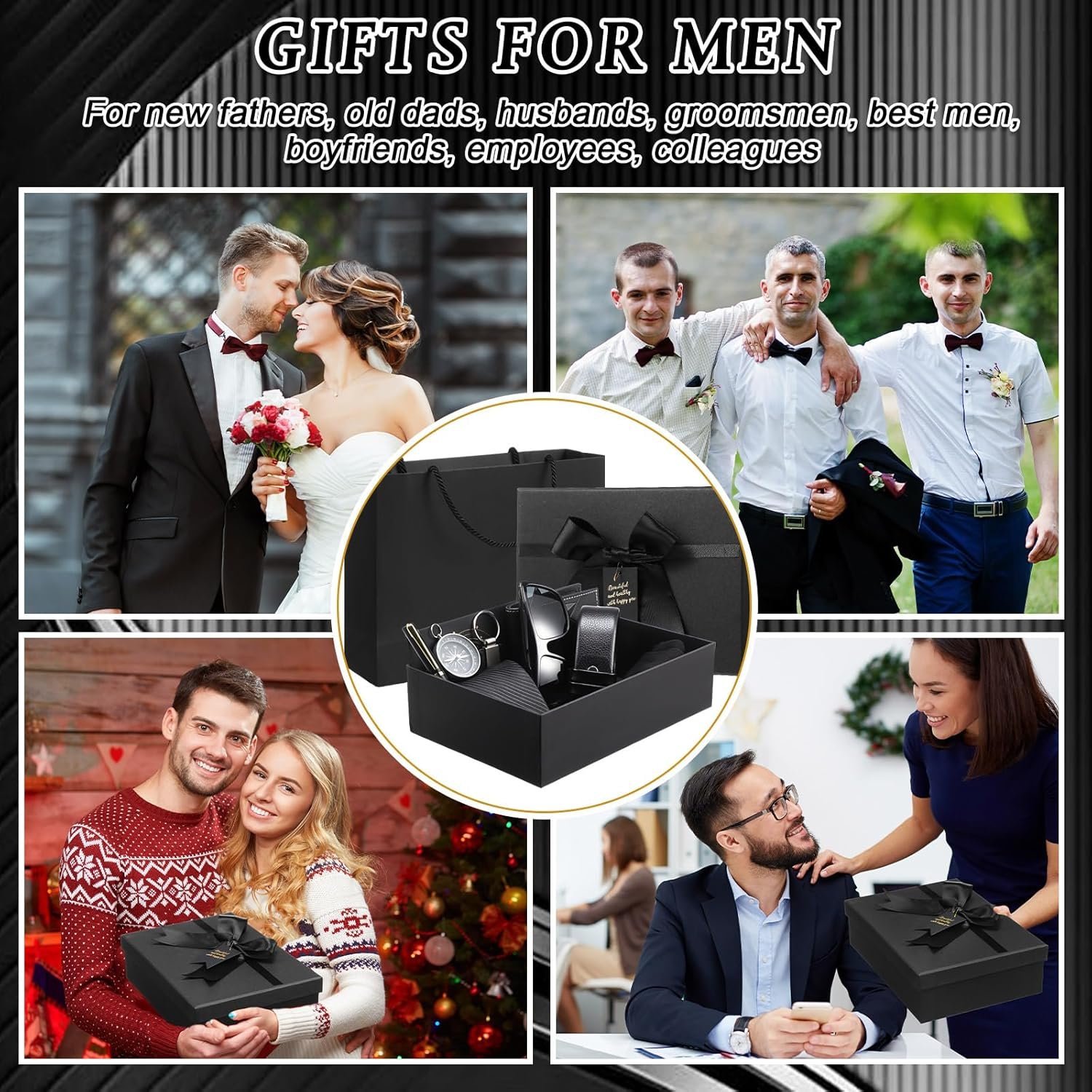 Geyoga 12 Pcs Men Birthdays Gift Set with Box for Men Dad Basket PU Leather Wallet Leather Toiletry Bag Tie Socks Belt Keychain Sunglasses Pen Compass Set