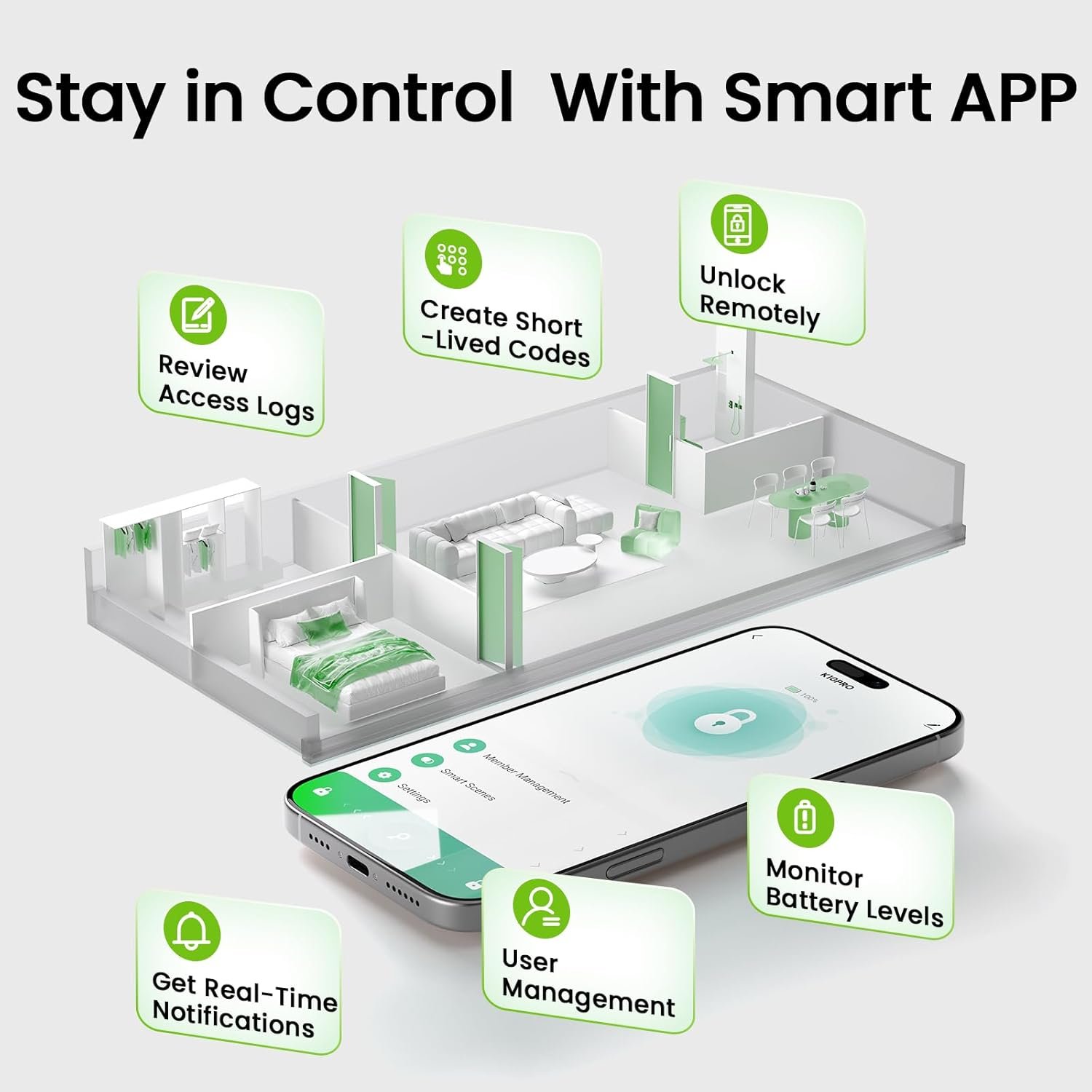【Smart App Integration】 Ghome smart lock lets you add fingerprints, passwords, check unlock logs, set auto-lock, passage & privacy modes via the free App. Note: App control within Bluetooth range. Offline? Use fingerprint to reconnect.
