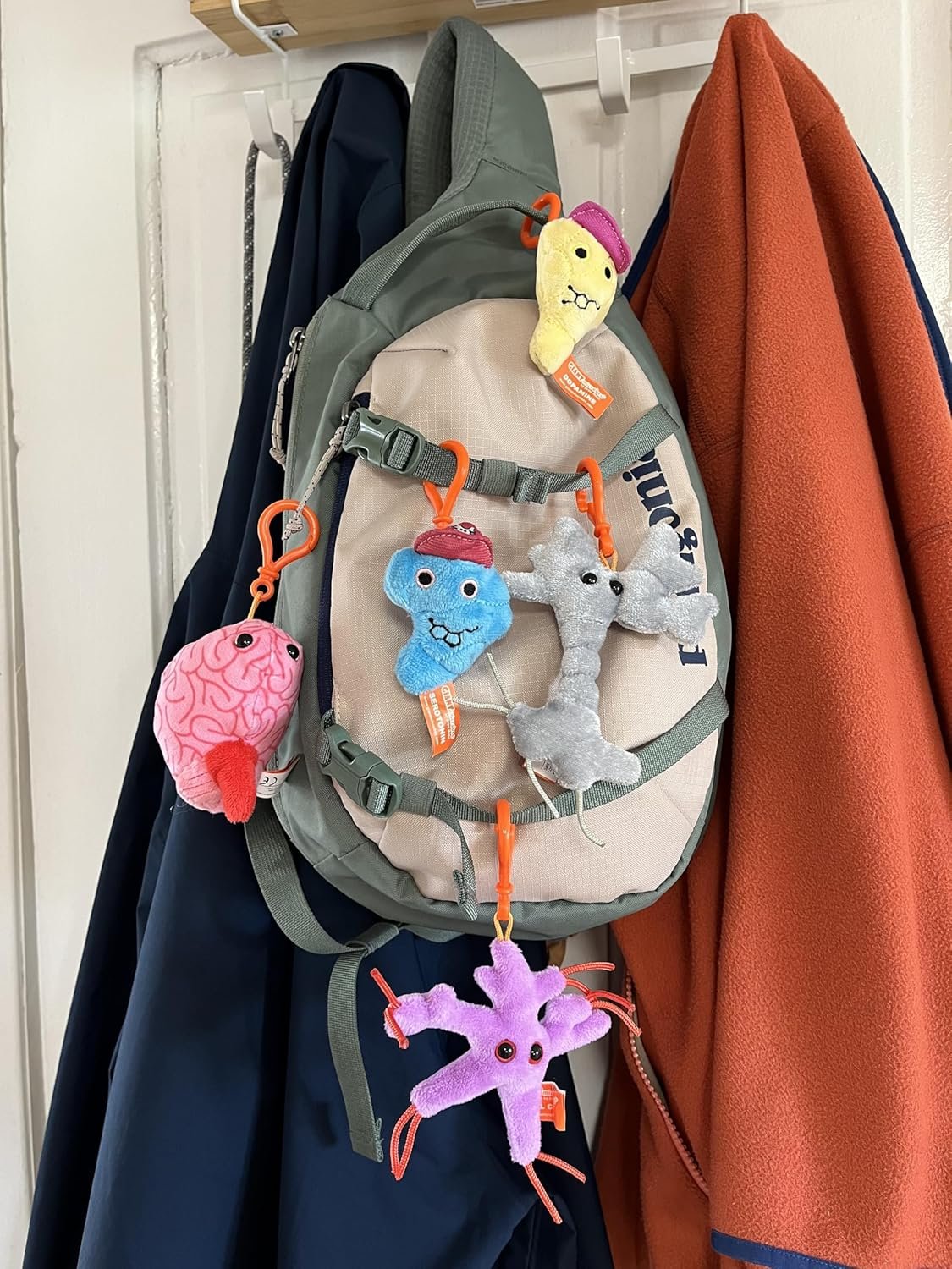 THOUGHTFUL and FUN ACCESSORIES: Elevate your style with this quirky set of 5 keychains featuring brain, serotonin, dopamine, brain cell, and glial cell designs. Perfect for adding a splash of personality to your backpack, keys, lanyard and more! Ideal for science enthusiasts, therapists, healthcare professionals, students, and anyone looking to express their love for neuroscience in a fun way.