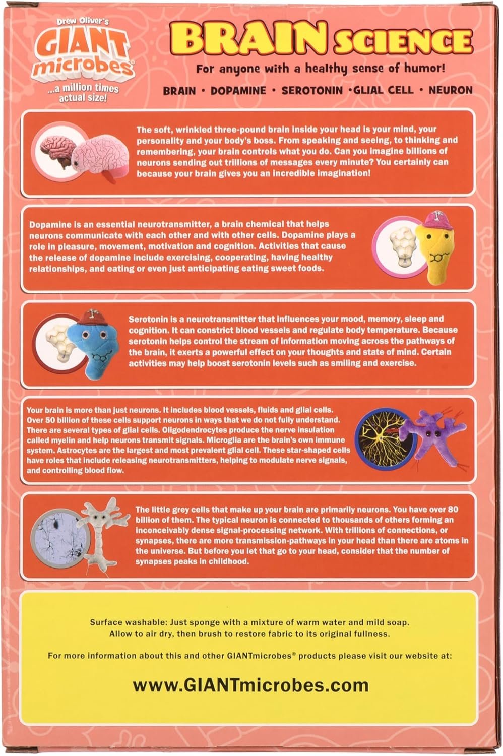 PREMIUM QUALITY and DESIGN: GIANTmicrobes has been developing and manufacturing high quality plush health and biology products for over 20 years. Our Brain Science Themed Gift Box is designed and crafted with medical advisors and scientific expertise, using durable, beautiful, quality, non-toxic materials that are safety tested to the highest global standards. Parents, students, educators, public health experts and healthcare professionals are assured they are in very good hands with GIANTmicrobes.
