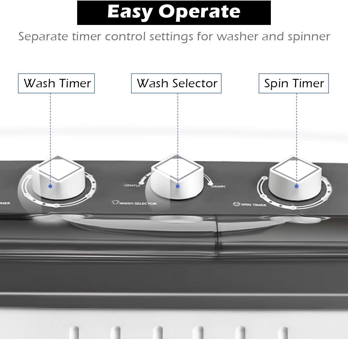 Giantex washing machine makes your laundry quick and efficient. Separate timer control settings can be freely chosen based on what and how many clothes to wash.