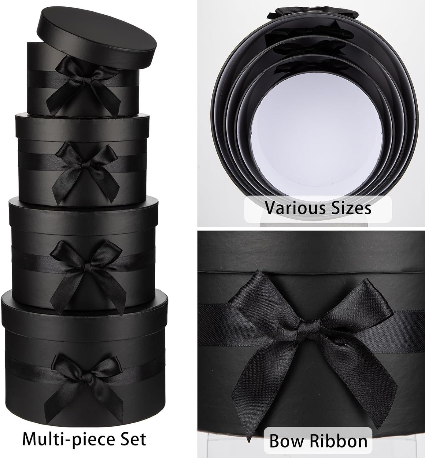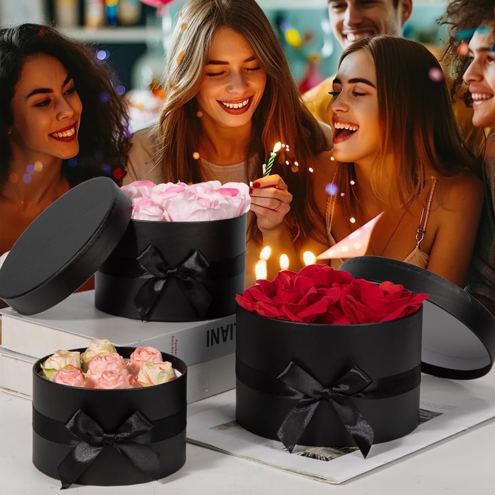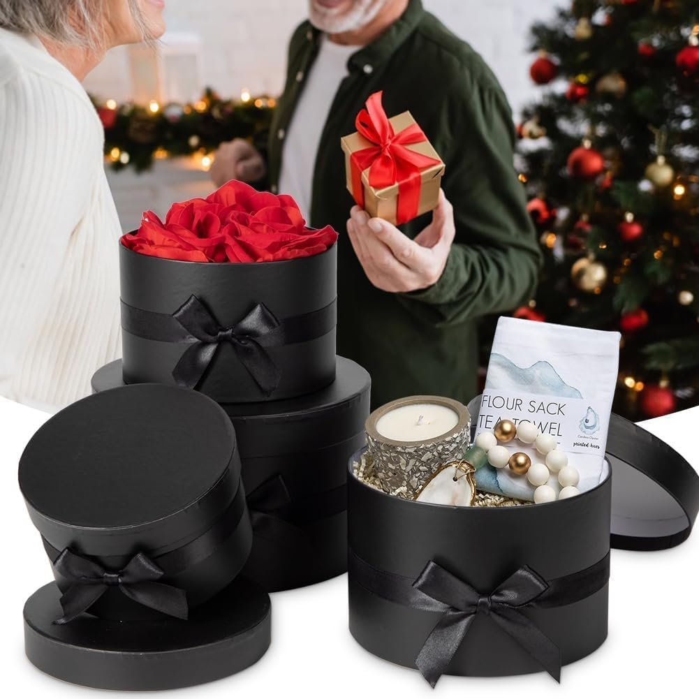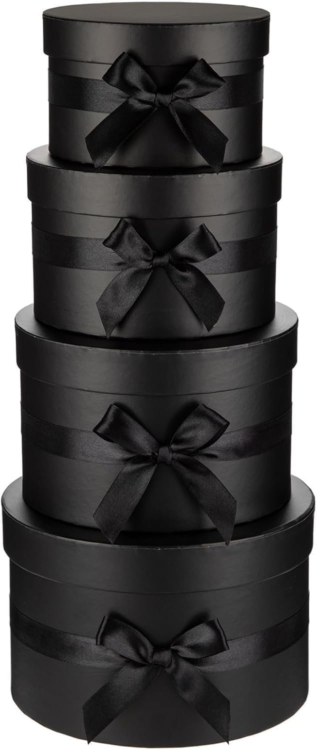Gift Boxes with Lids for Presents Set of 4 for Arrangements Flowers Wedding Birthday Valentines Bridesmaid Christmas Party Black