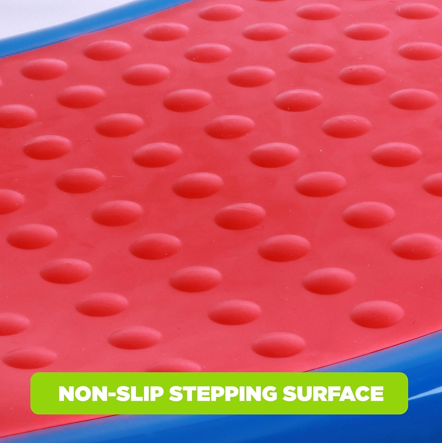 NON-SLIP SURFACE AND FEET: Stiff gripping rubber on both the top and bottom, allow feet to stay planted on top while the stool stays firmly on the ground.