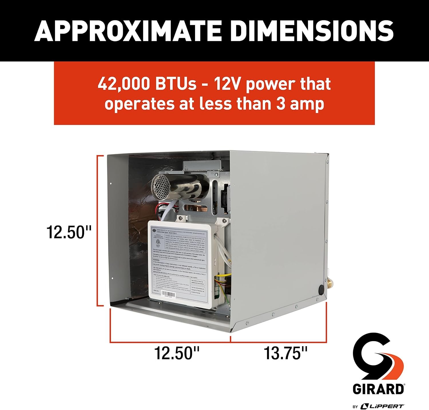 GIRARD Tankless RV Water Heater, 12V Power, 42,000 BTUs, Quiet Operation, Onboard Microprocessor, Digital User Control Panel, Freeze Protection, Easy Installation – 2022107534