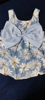 Absolutely charming This daisy print dress is perfect for spring and summer. The strap design and flared skirt give it an adorable and comfortable touch. The oversized blue bow is the center of attention and perfectly complements the color of the fabric.