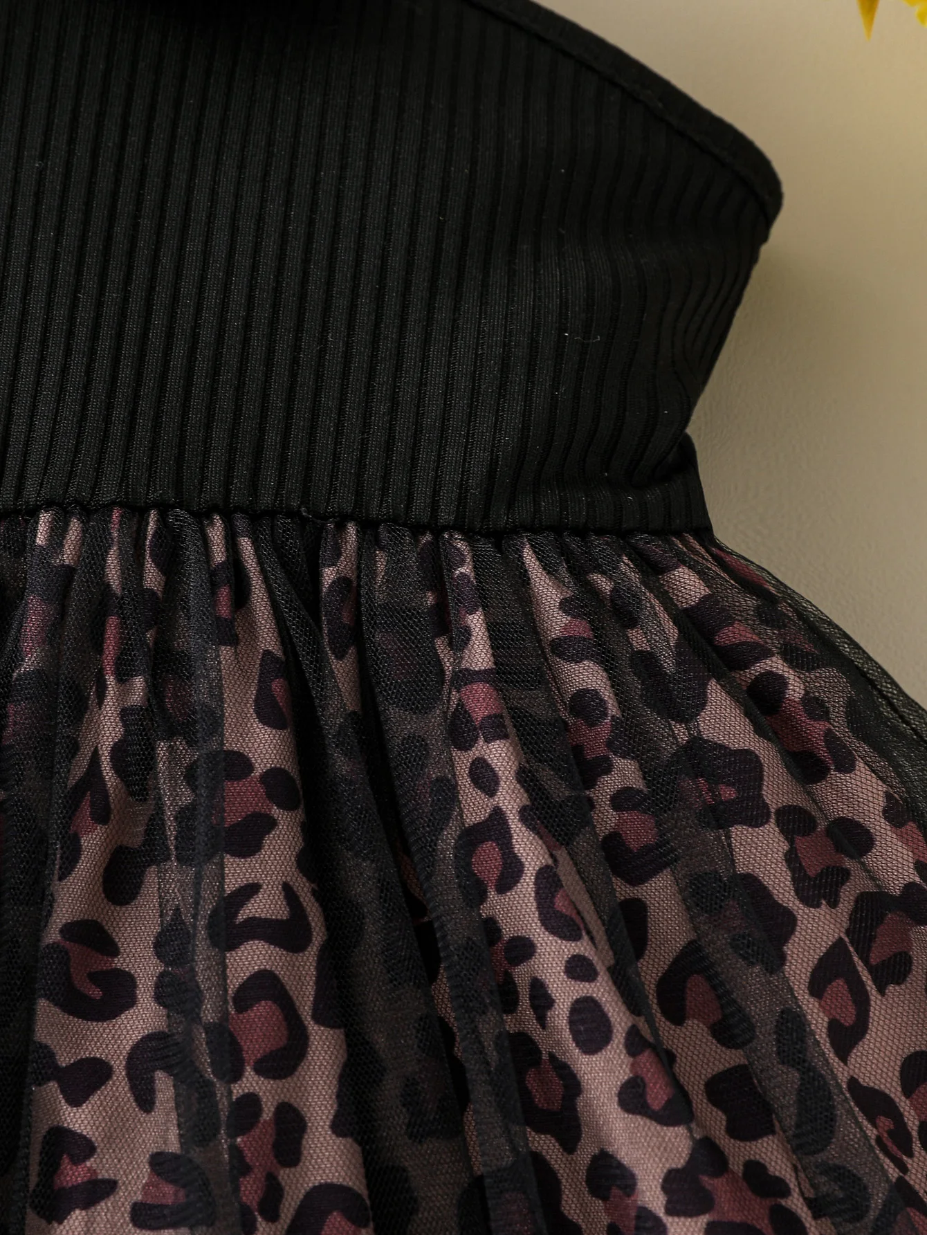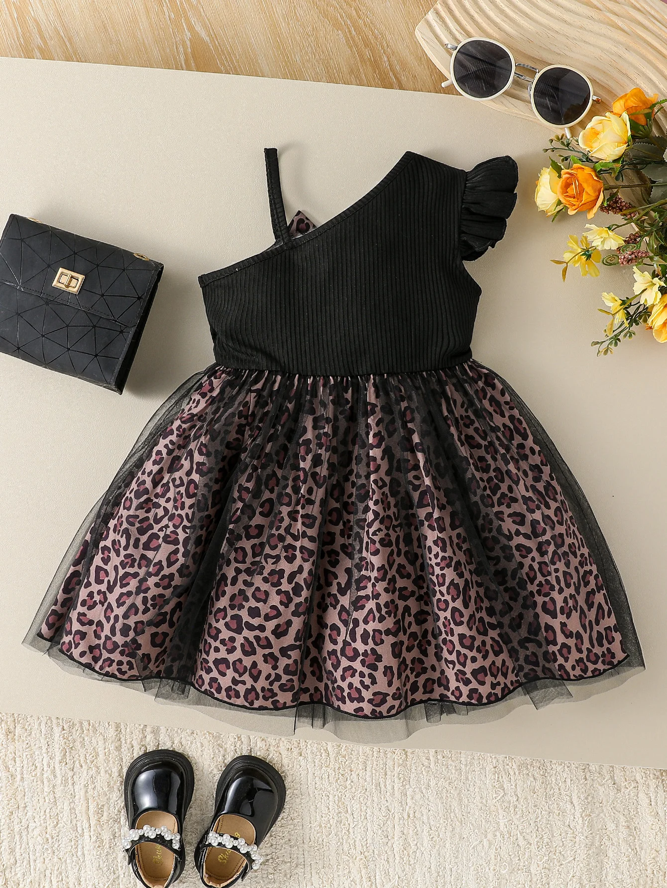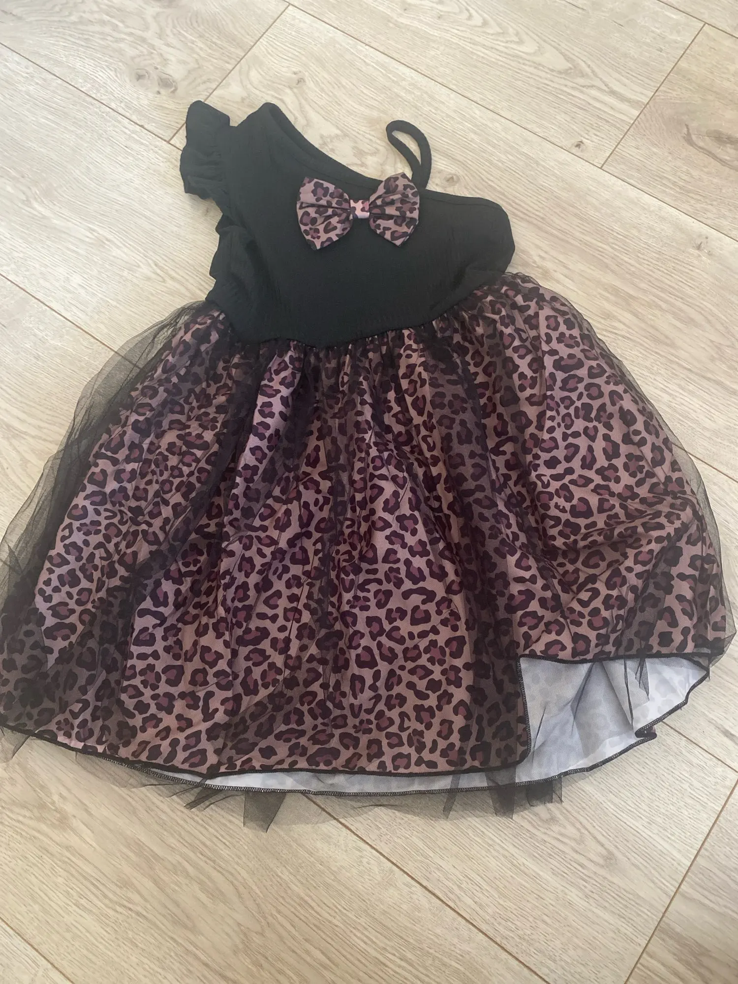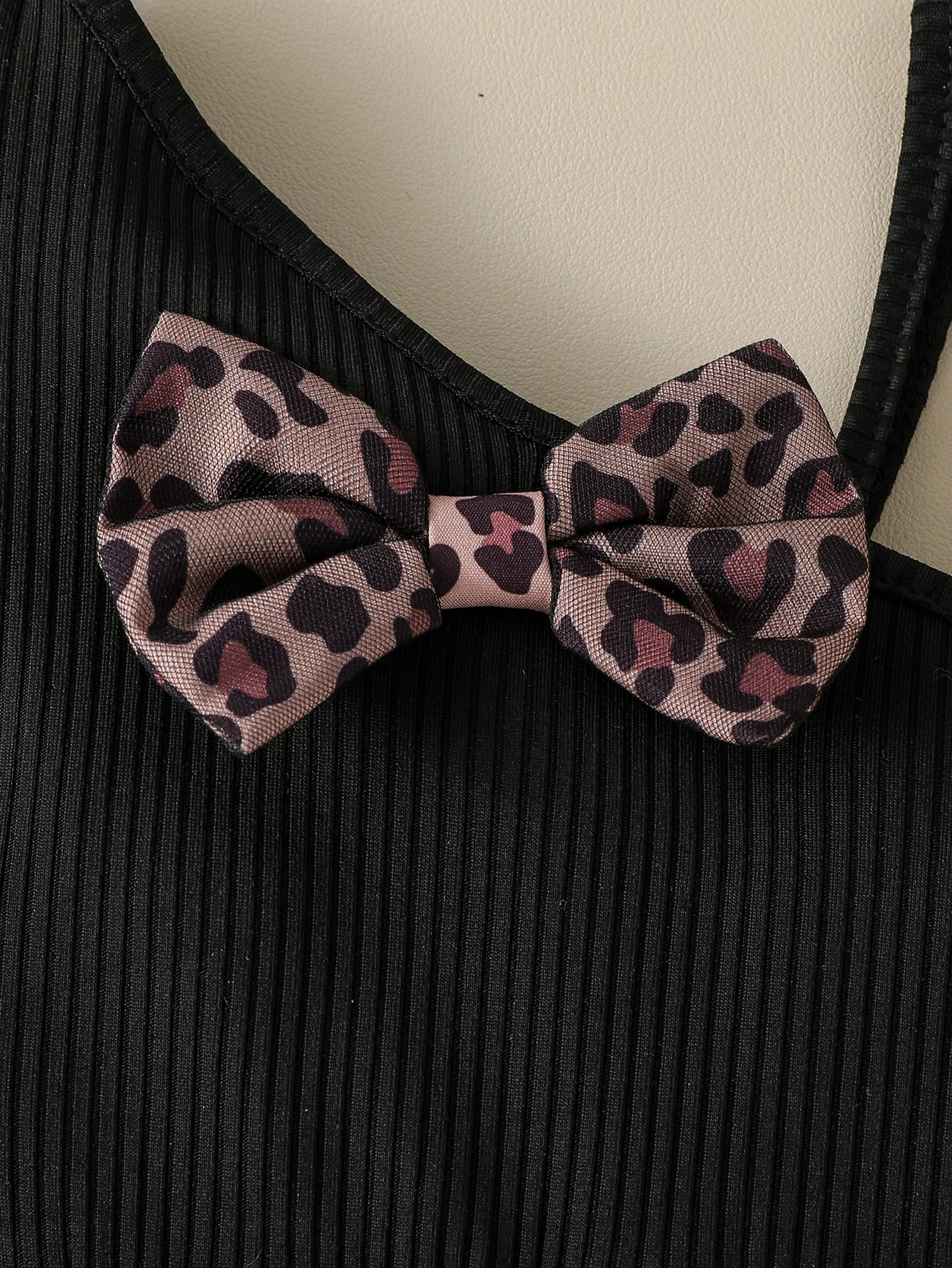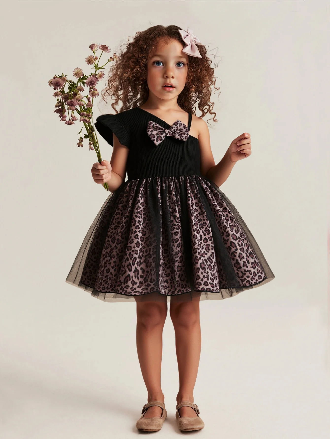 2 reviews for Girls 2025 Kids Fashion Streetwear Summer Sleeveless With Bow Leopard Shoulderless Princess Dresses For 1-6Y Children Clothes