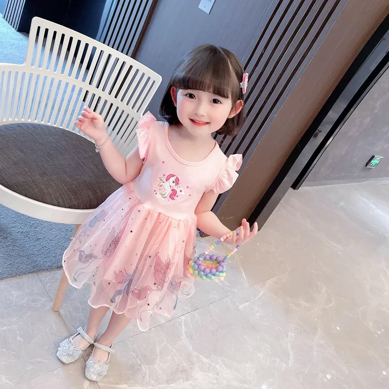 Girls Clothes 2024 New Summer Princess Dresses Flying Sleeve Kids Dress Unicorn Party Baby Dresses for Children Clothing 1-6Y