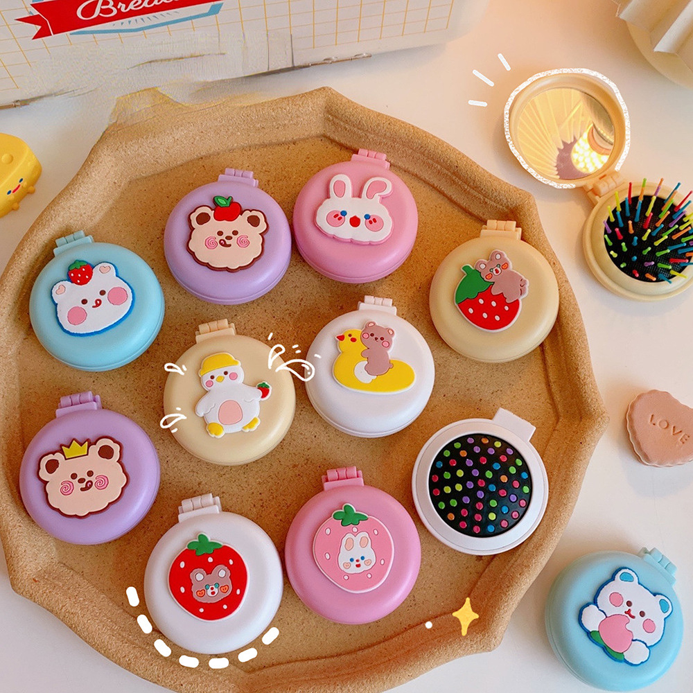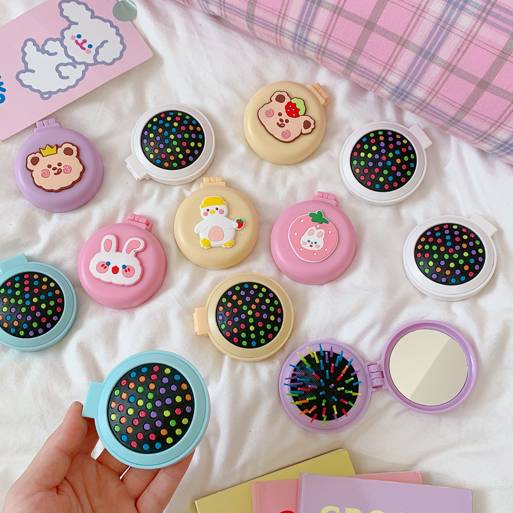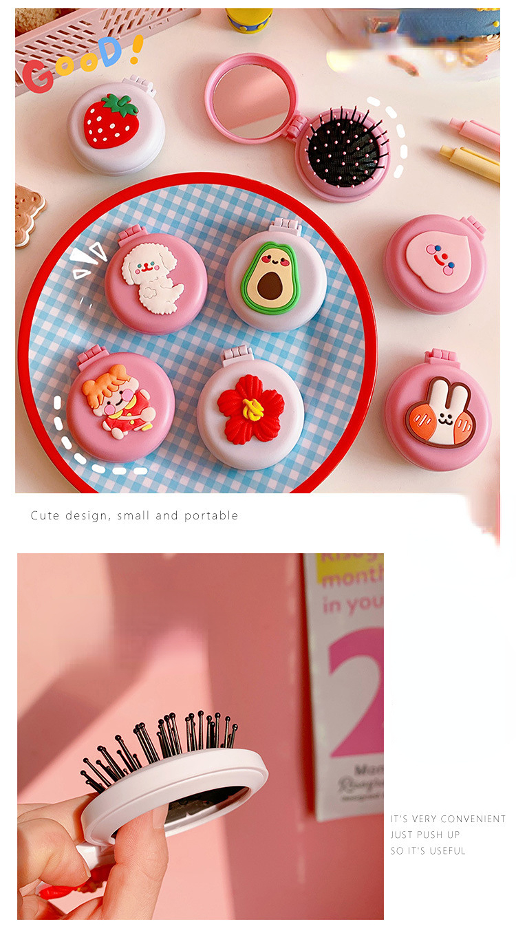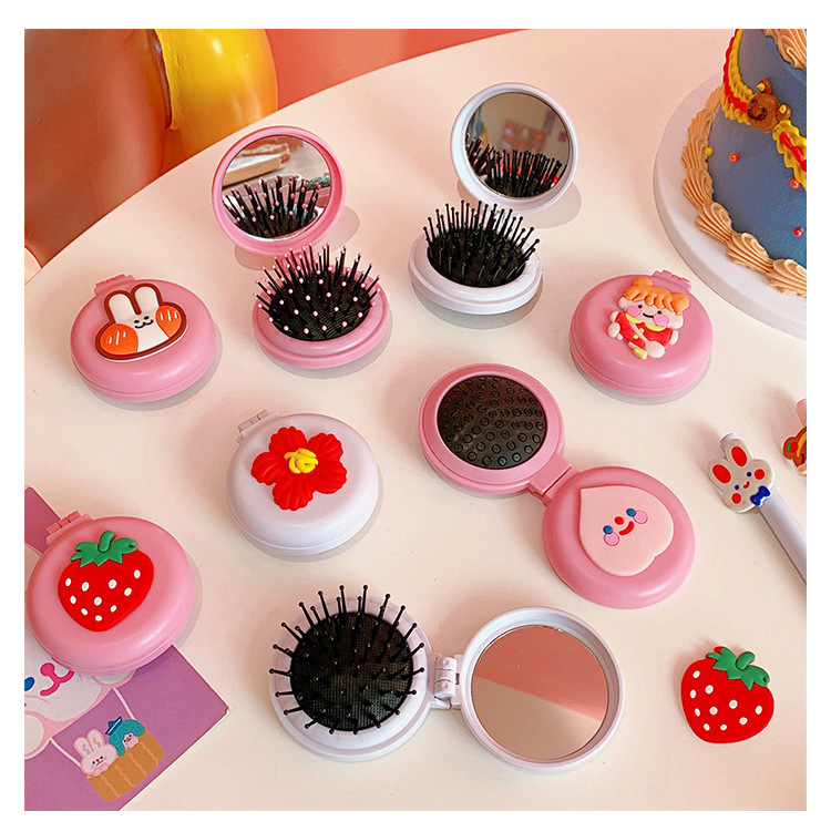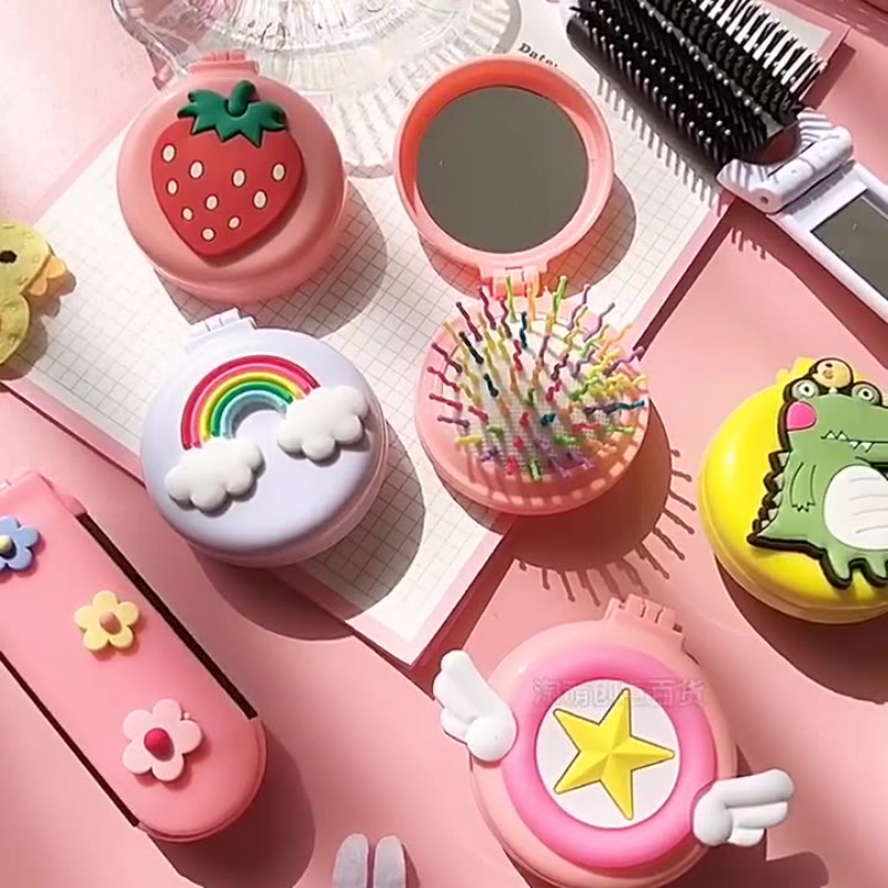 Girls Cute Cartoon Foldable Comb with Mirror Portable Small Compact Kawaii Folding Comb Children Air Cushion Hair Styling Comb