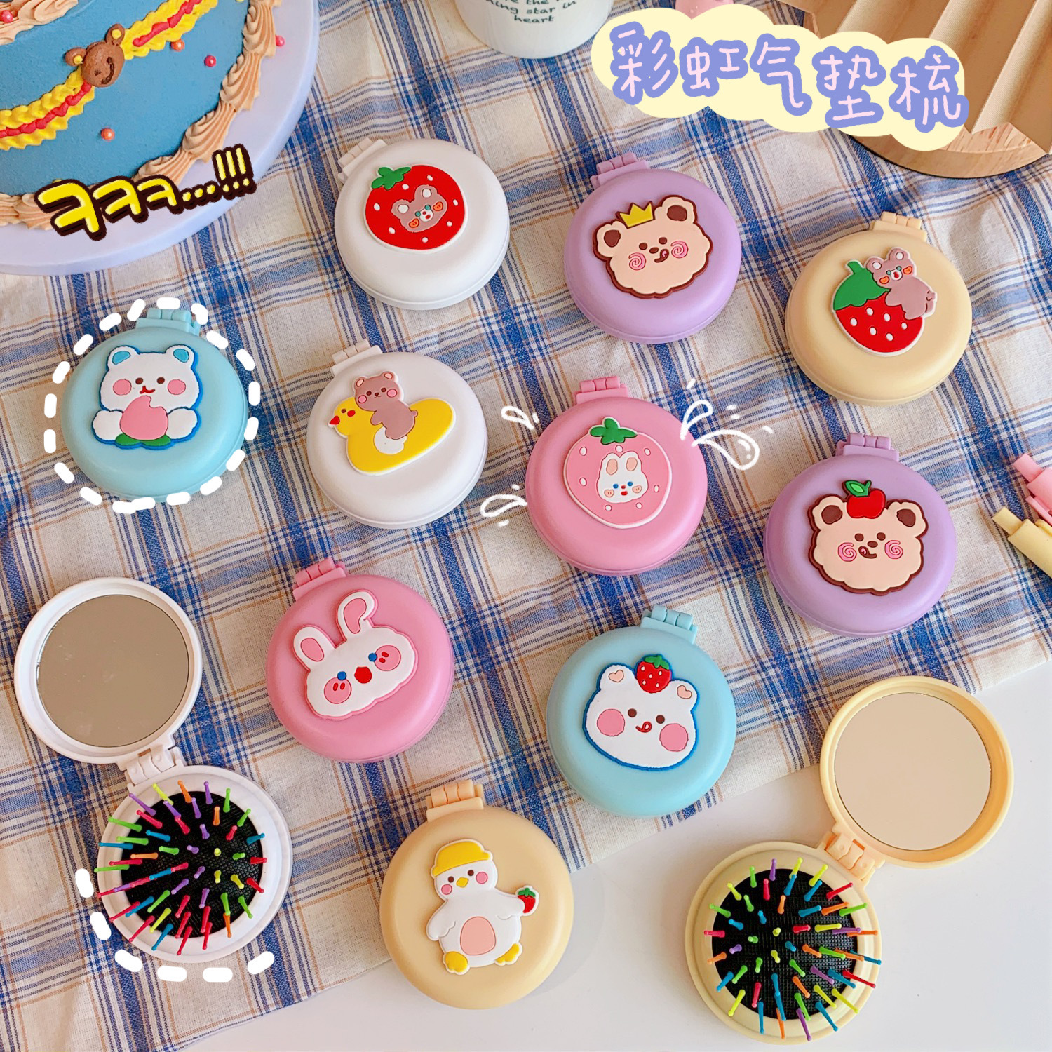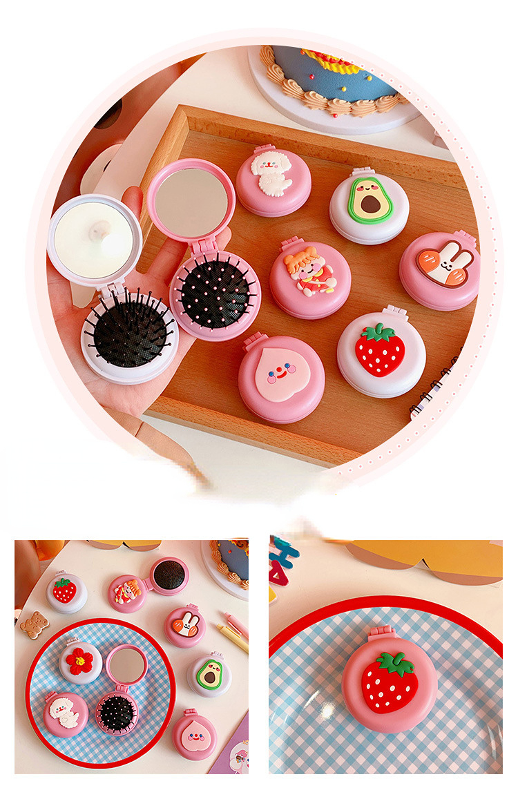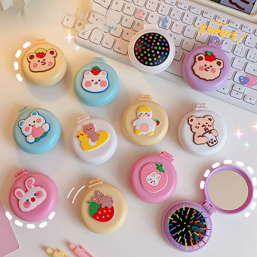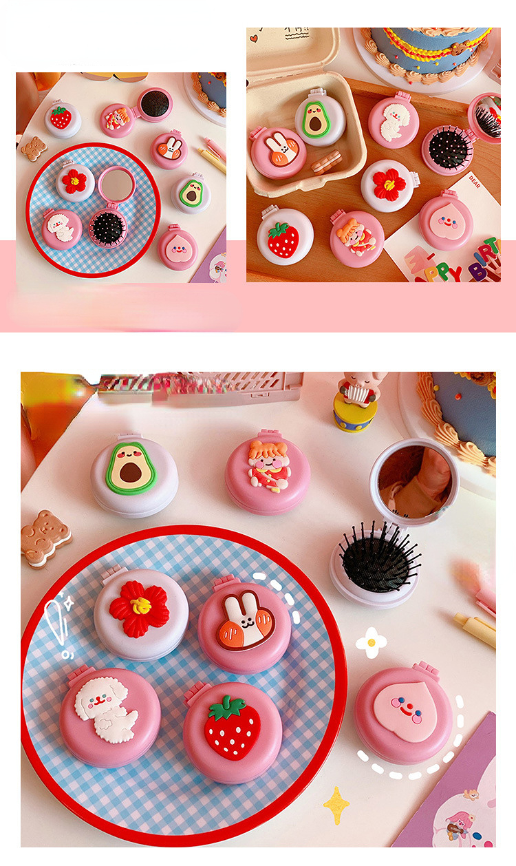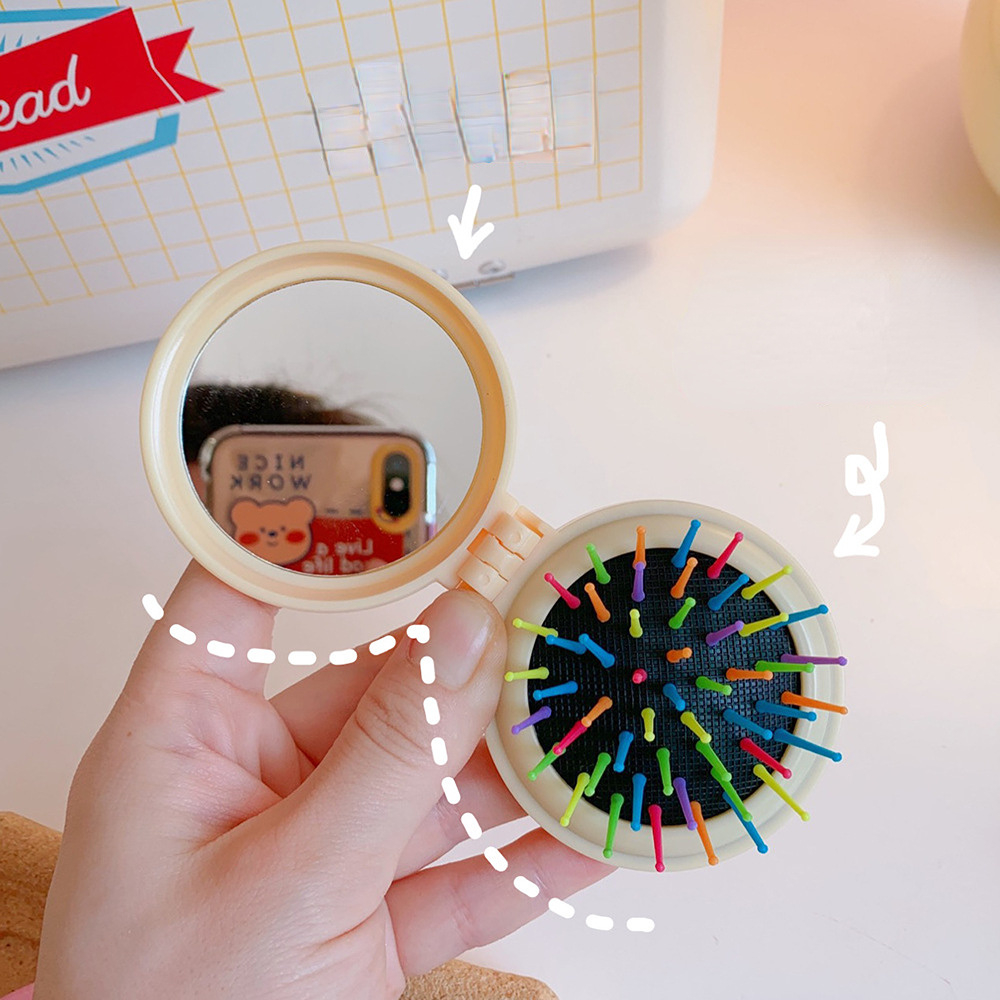 Girls Cute Cartoon Foldable Comb with Mirror Portable Small Compact Kawaii Folding Comb Children Air Cushion Hair Styling Comb