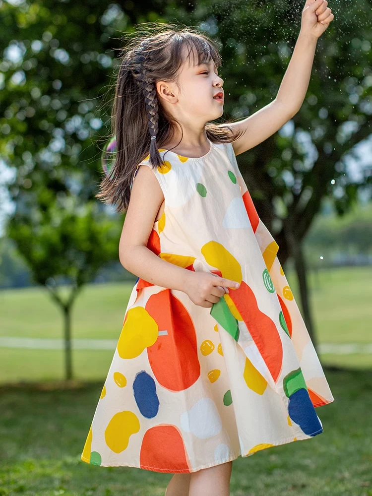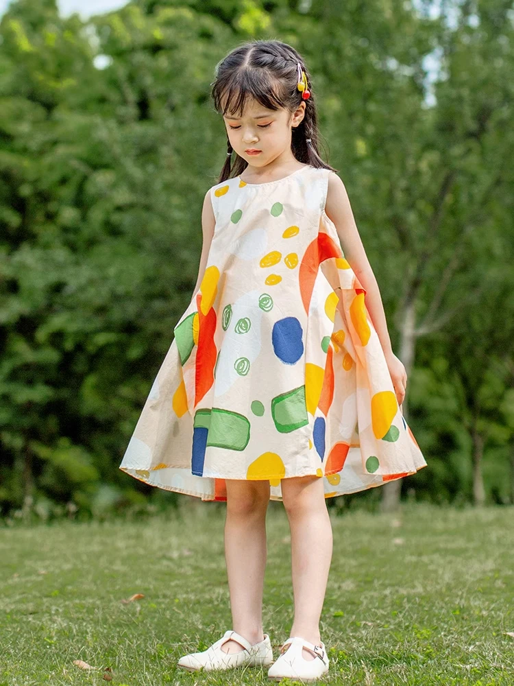Girls Dress Rainbow Dot Dress Summer Vest Dress Sleeveless Dress Cute A-line Dress New Princess Dresses