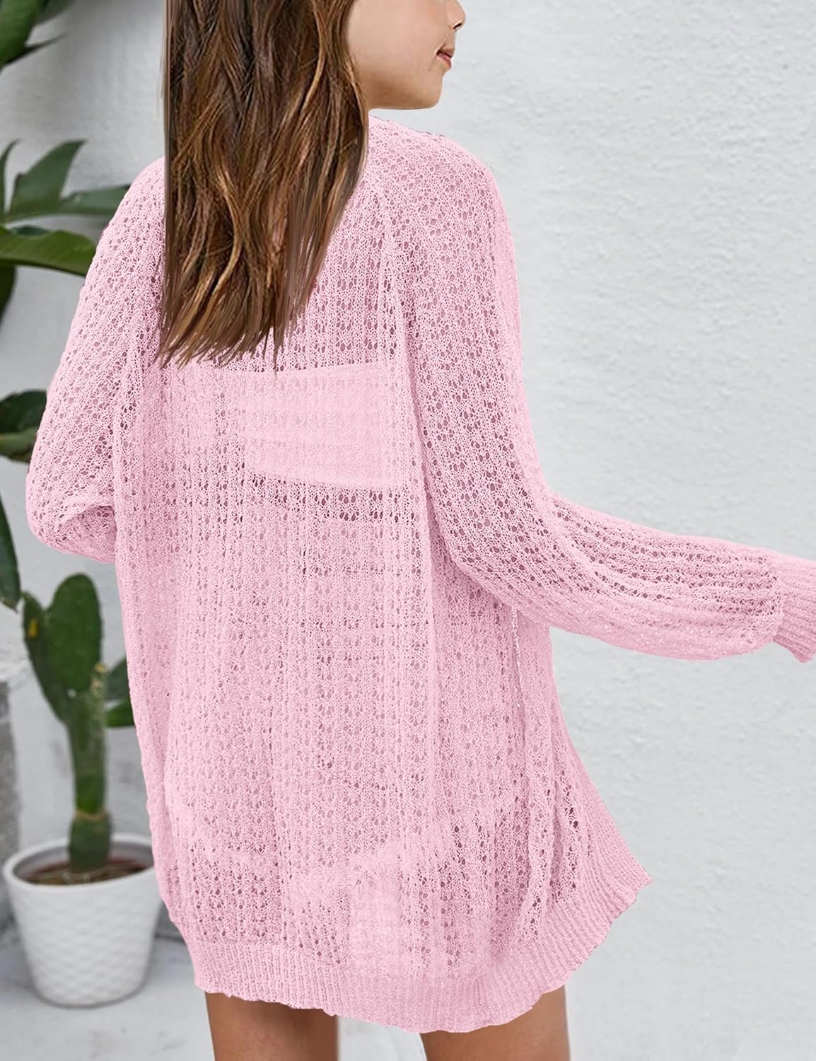 Girl’s Lightweight Cardigan Summer Crochet Long Sleeve Soft Boho Cardigans Beach Cover UP