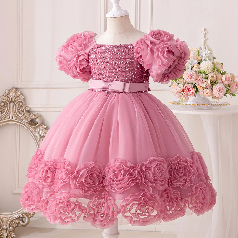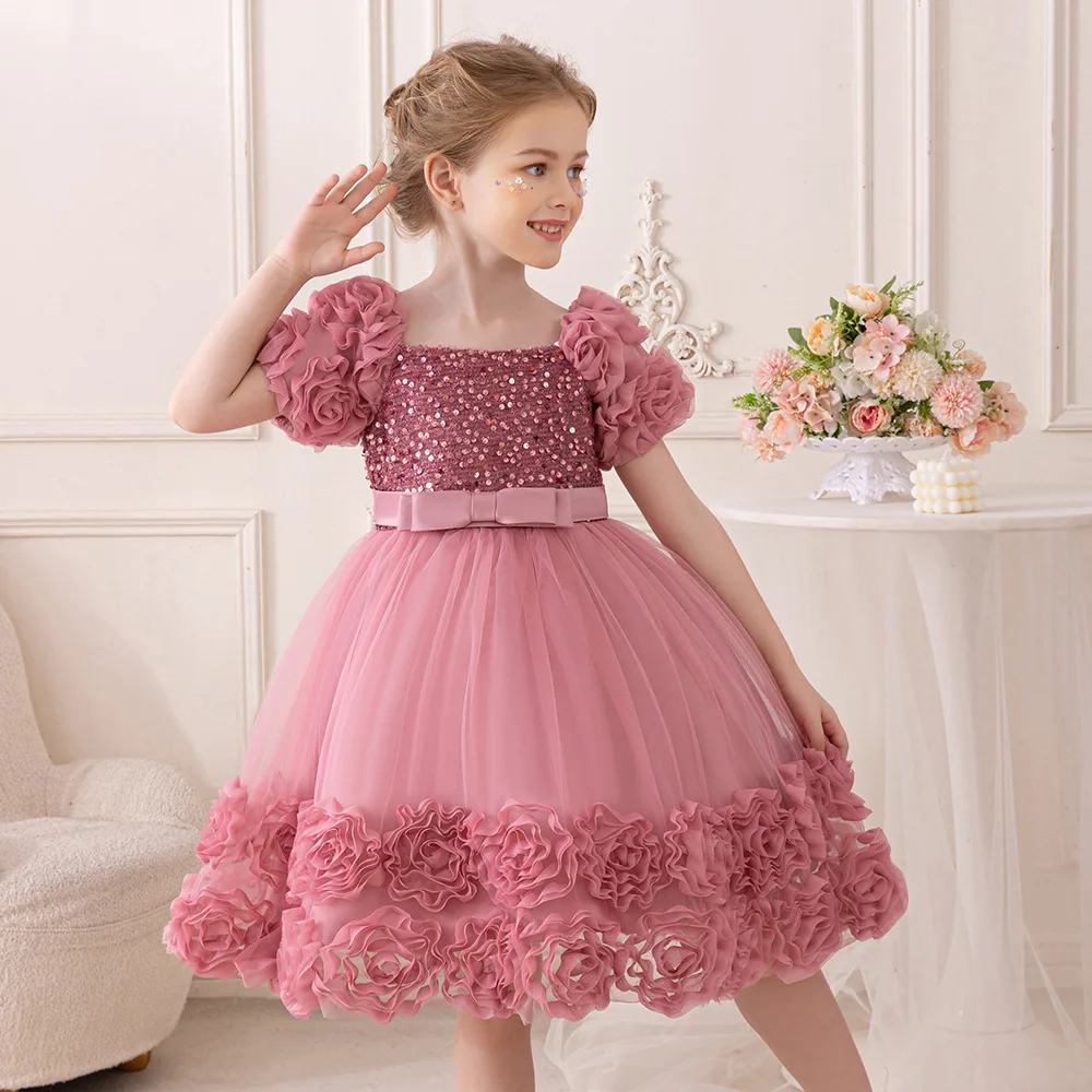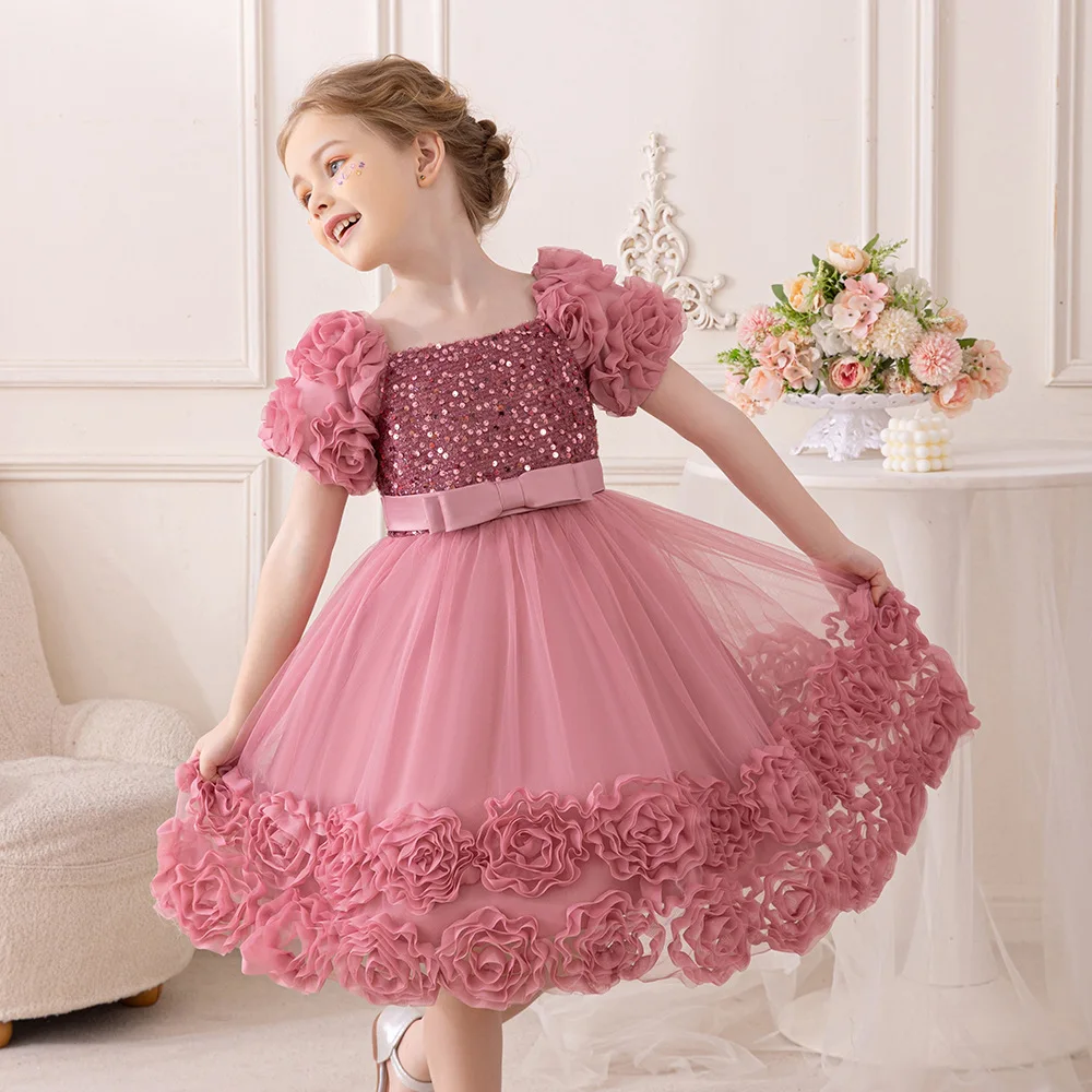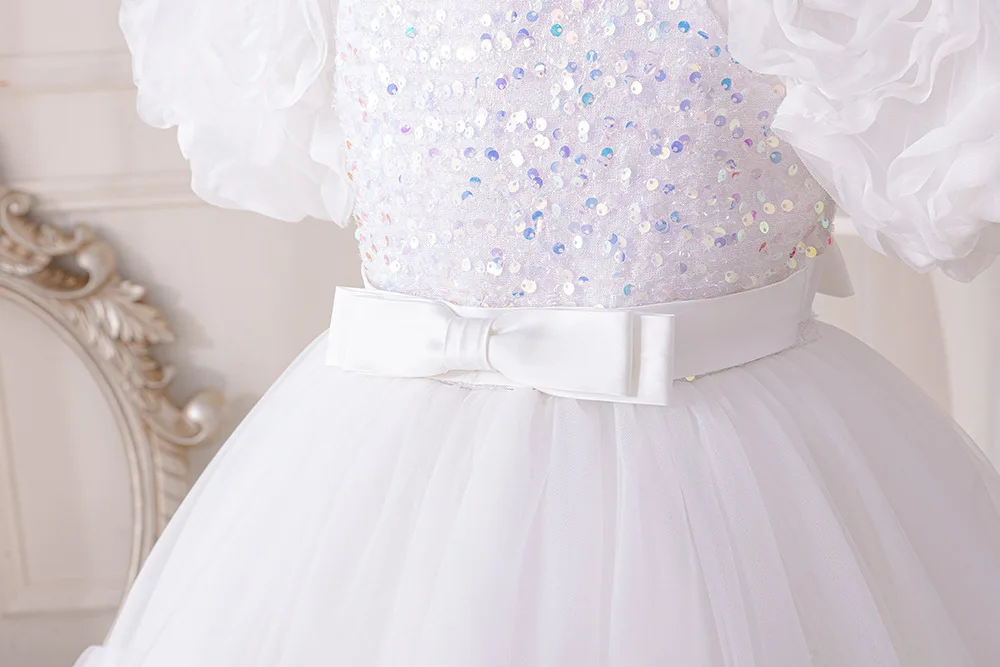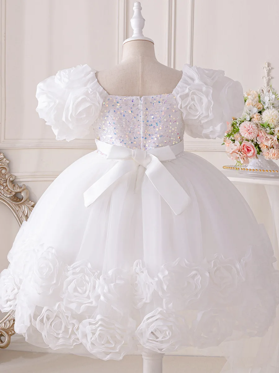 Girls Party Dresses Flower Puffy Princess Dress White Wedding Bridesmaid Birthday Party Gown Baptism Girl Elegant Dresses