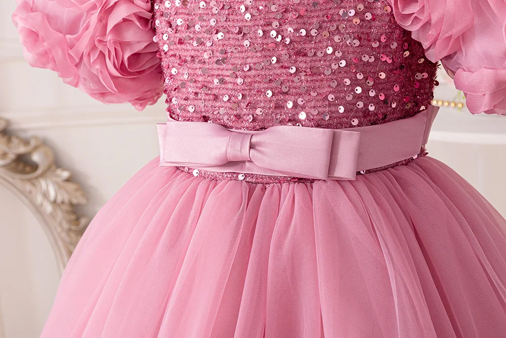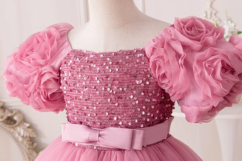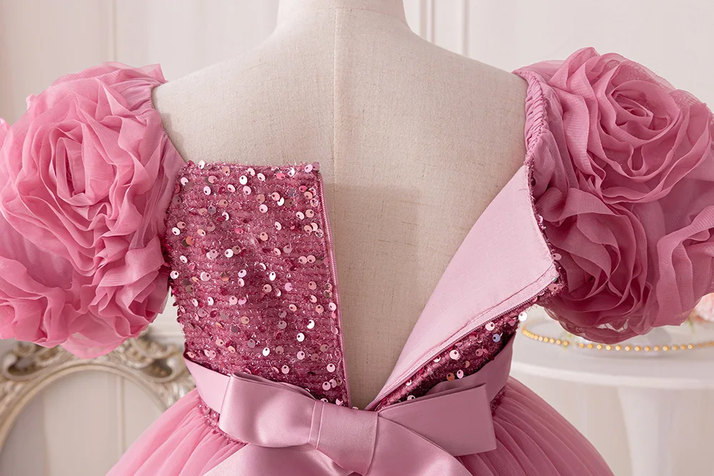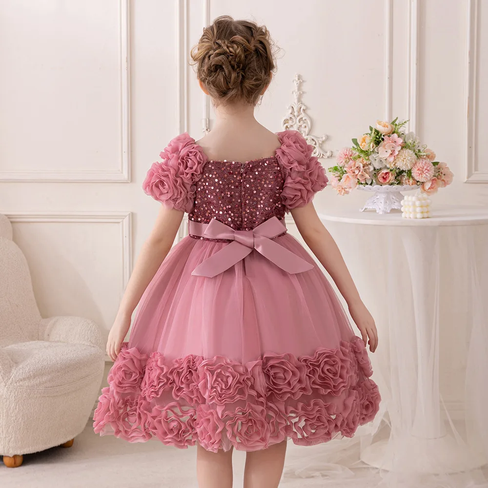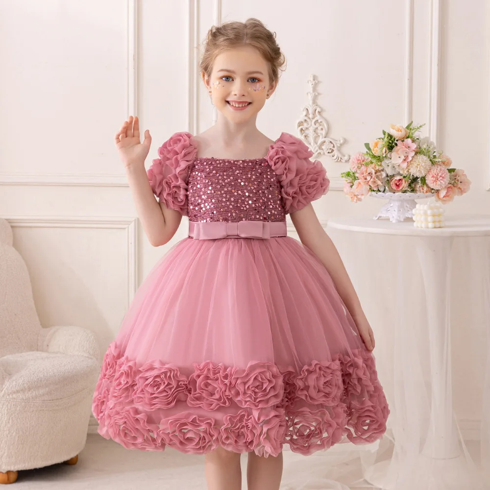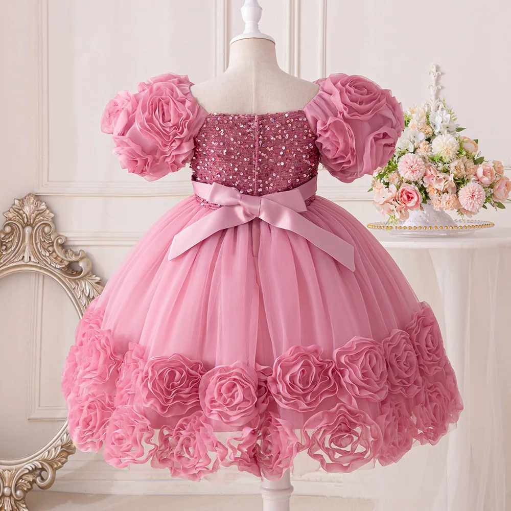 Girls Party Dresses Flower Puffy Princess Dress White Wedding Bridesmaid Birthday Party Gown Baptism Girl Elegant Dresses