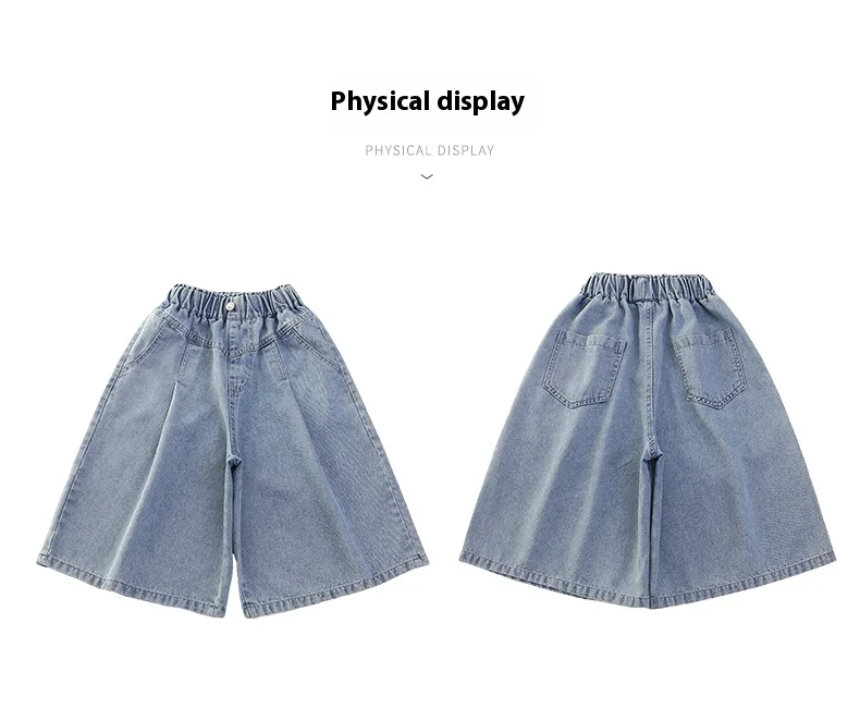 1 review for Girls’ sequin denim shorts, stylish and versatile, for children aged 5-15, with a three-dimensional wrinkled effect to them look